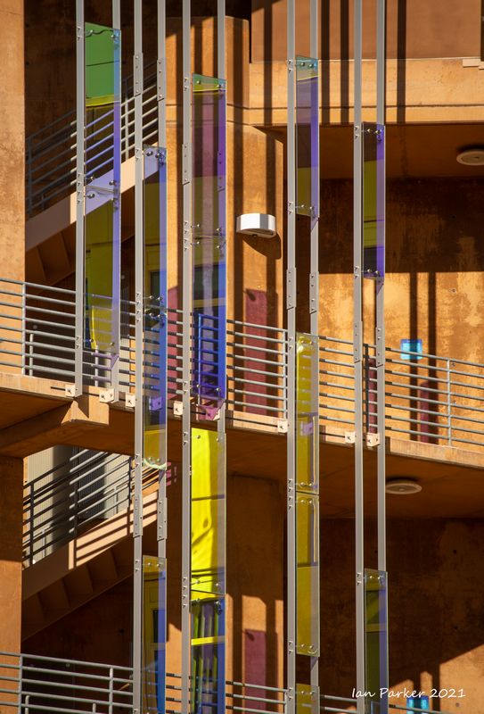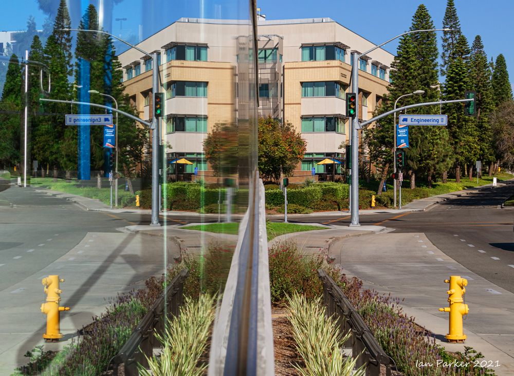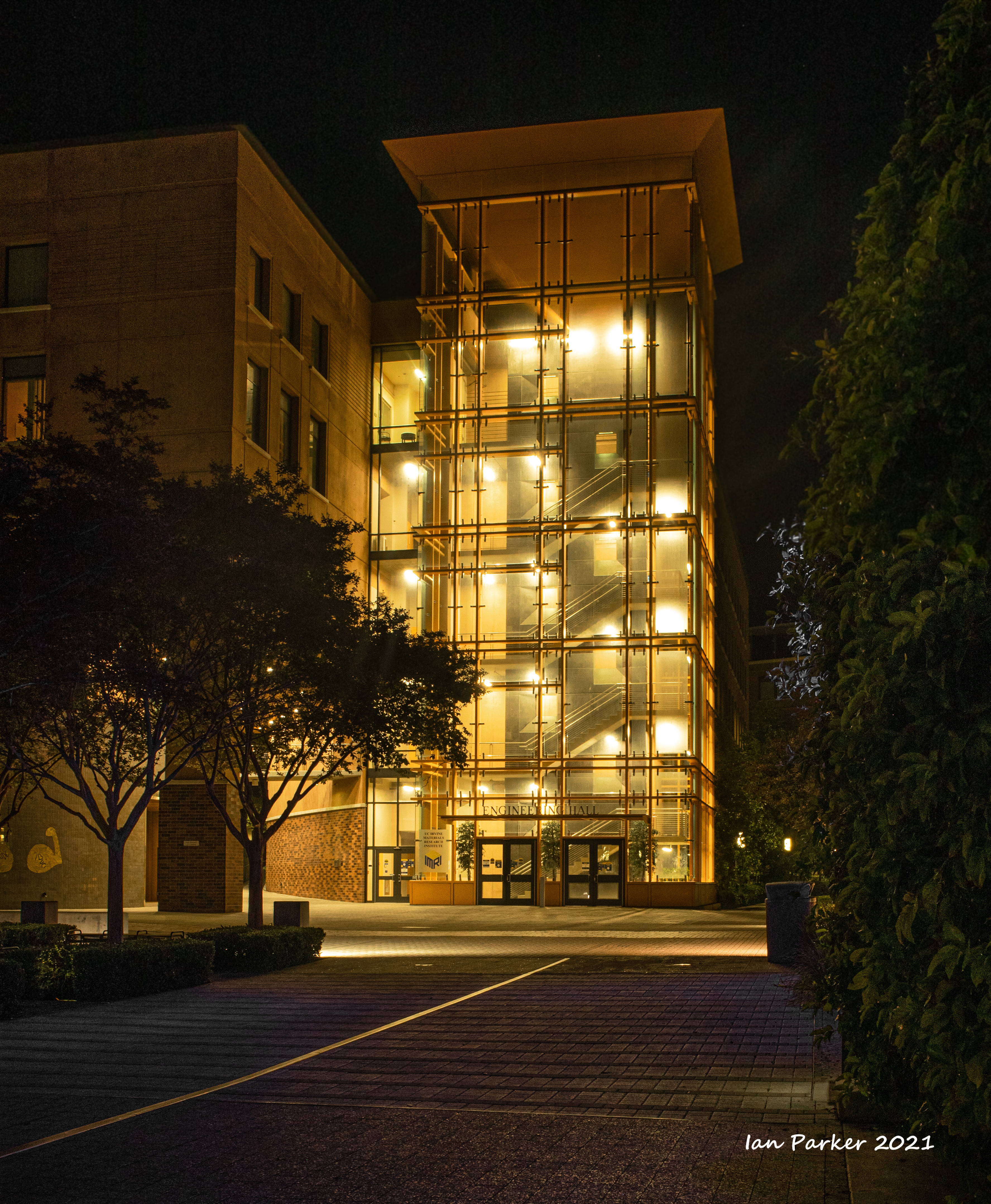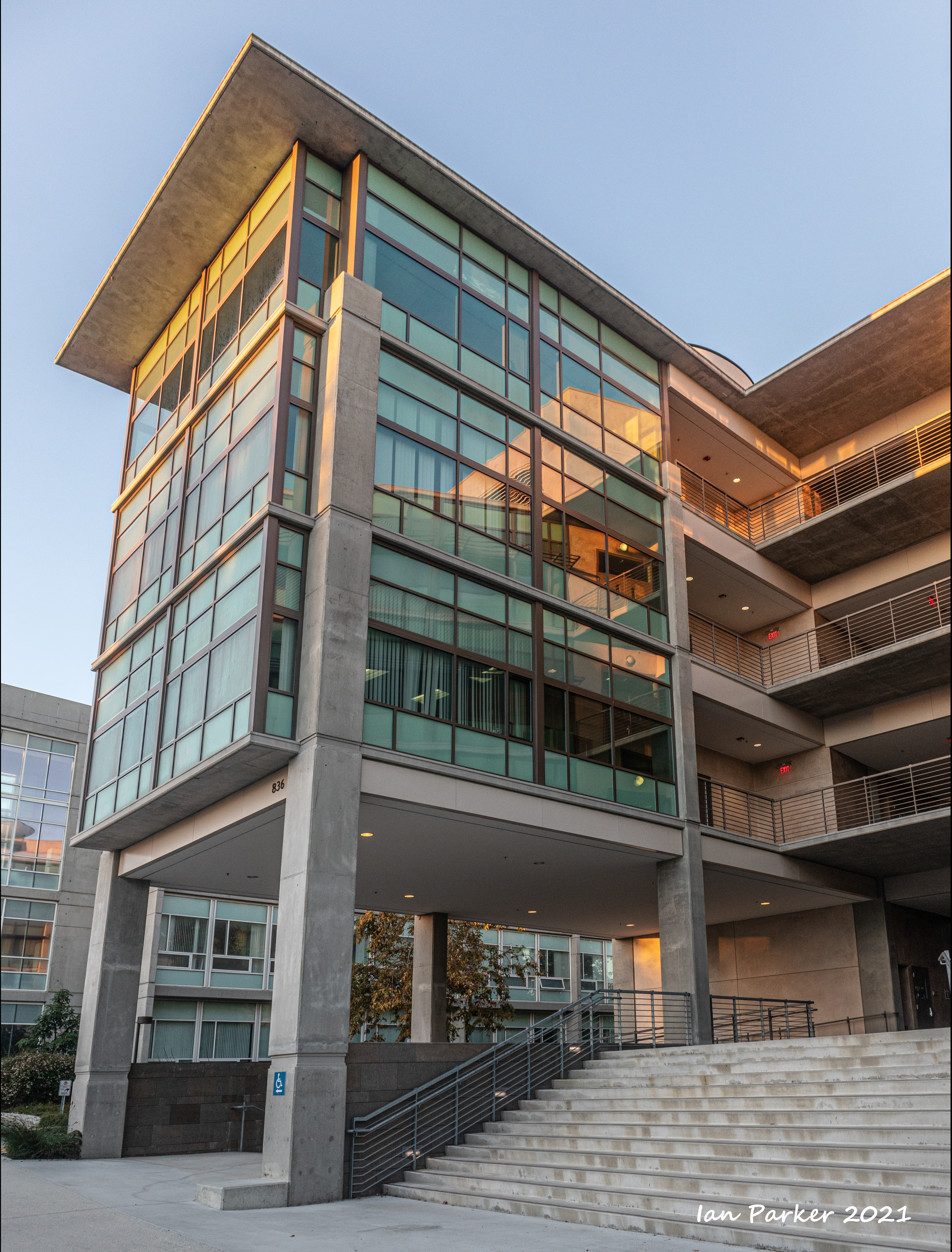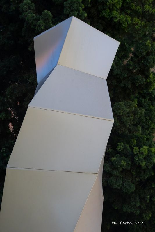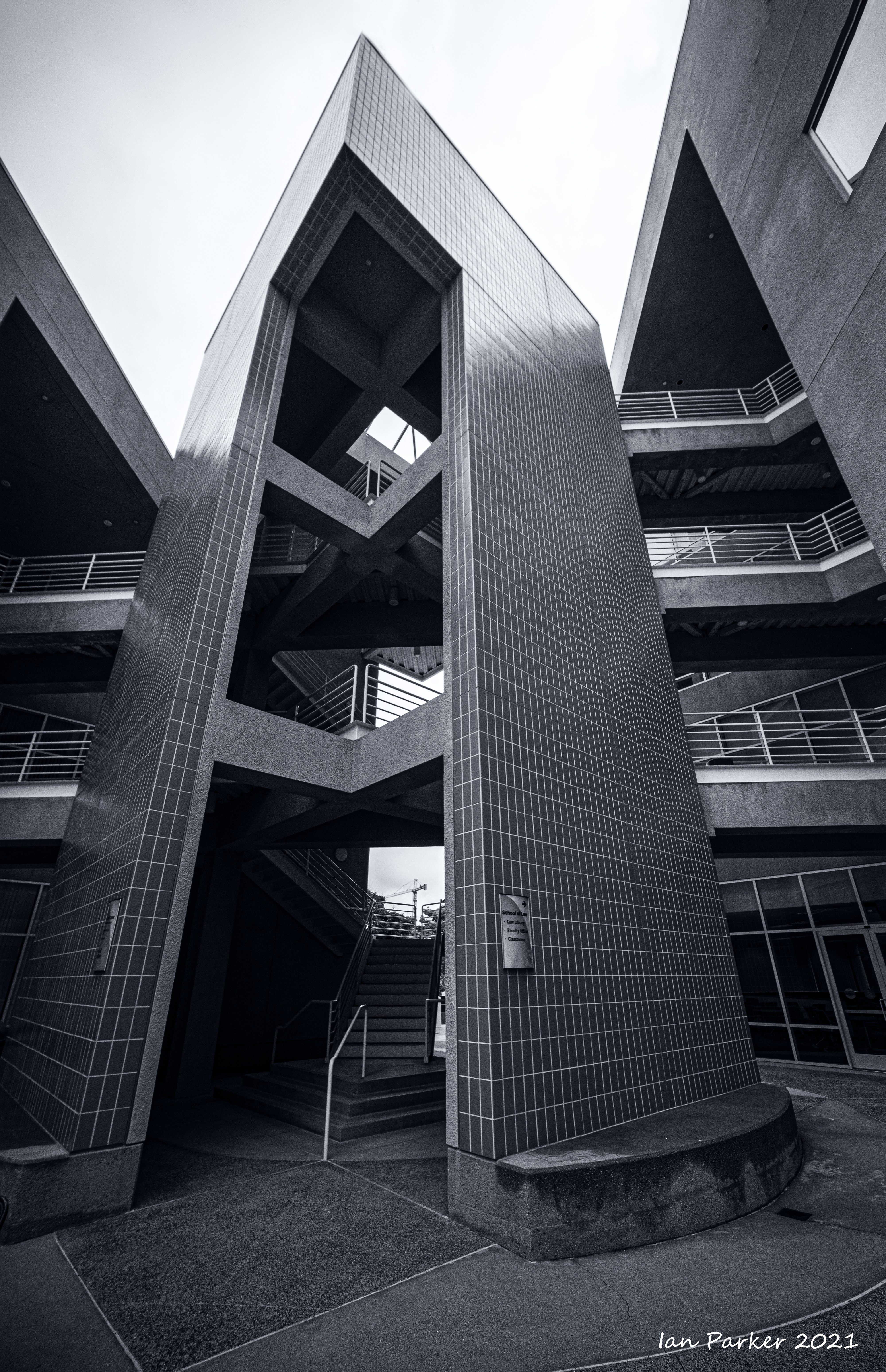 The academic buildings had been locked throughout the covid pandemic with key-card access only for those researchers working in a building. Last week arrangements started to return to normal, with buildings unlocked during the day. One building I had particularly hankered to get into was the Engineering Hall, with its glass-enclosed stairway supported by a spectacularly orange framework and topped by an orange inverted Vee structure.