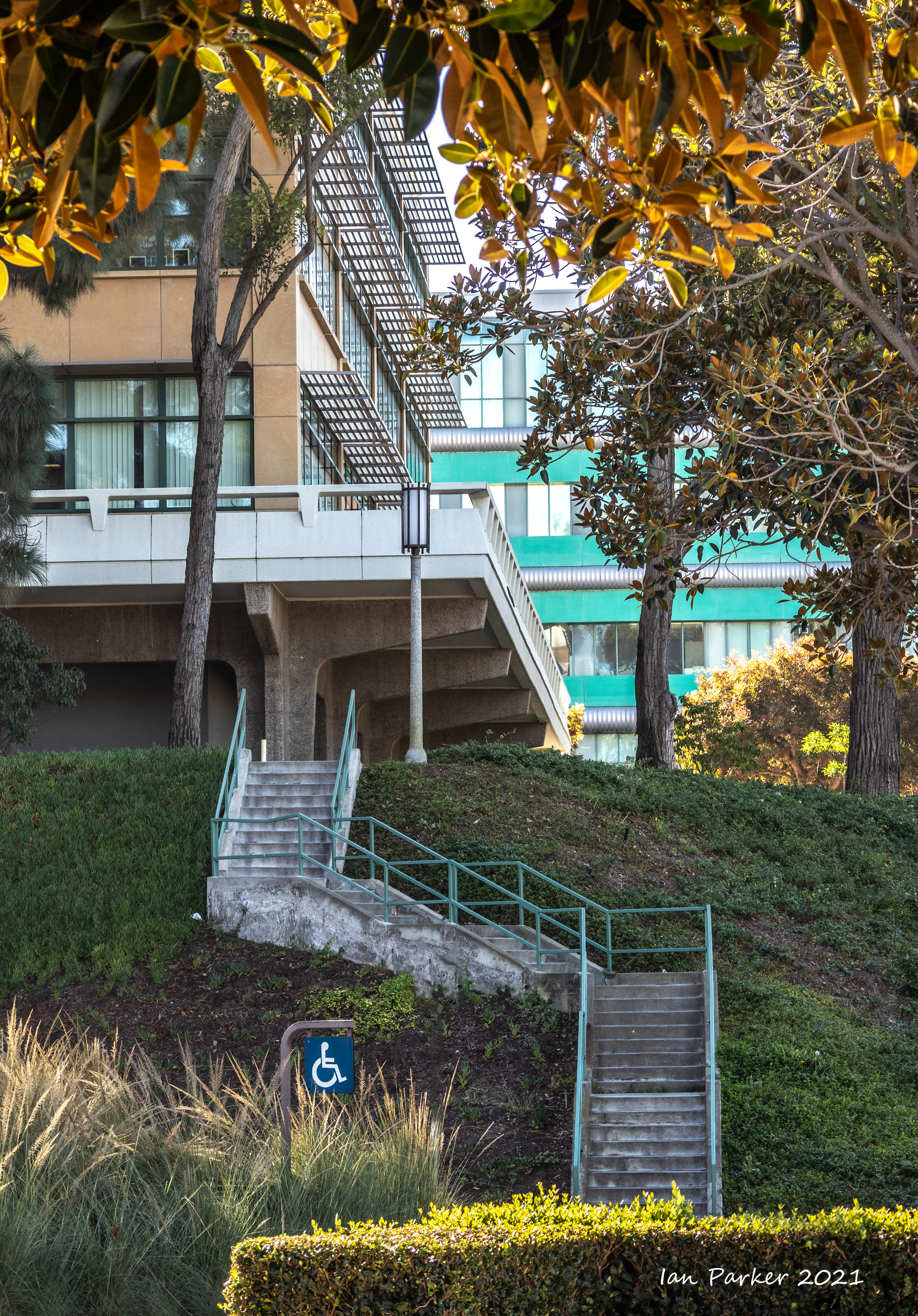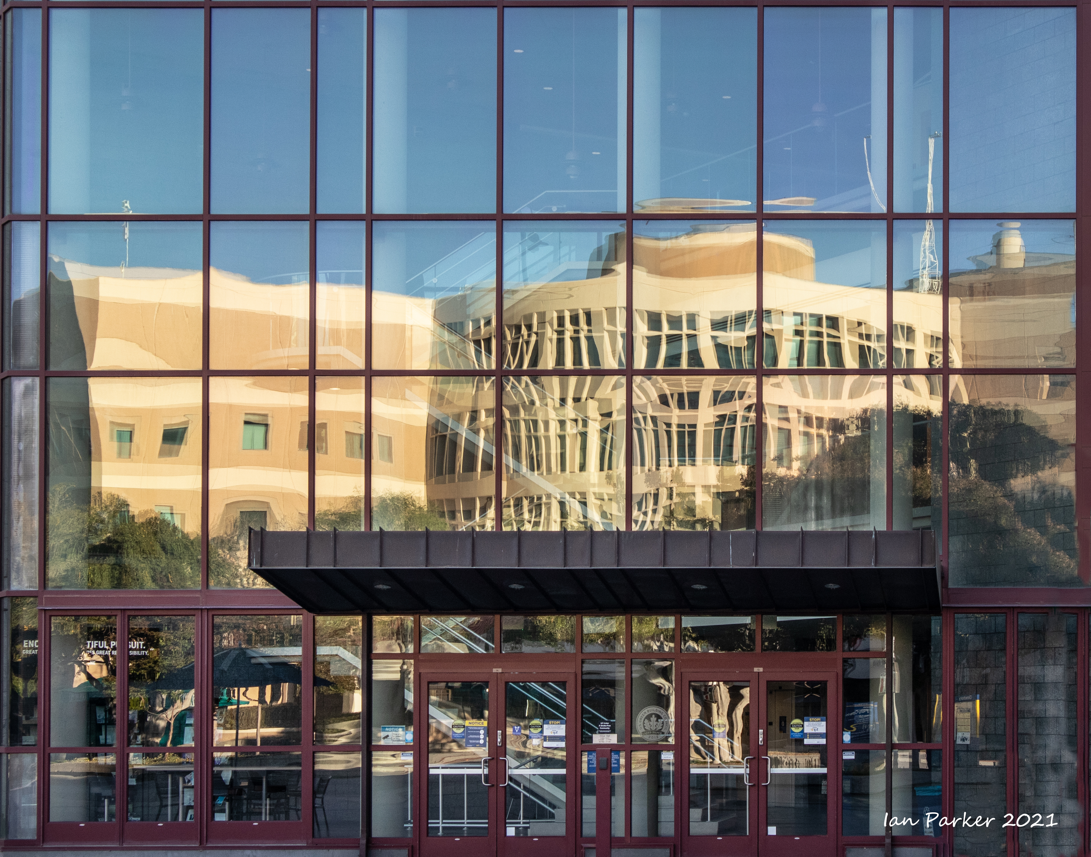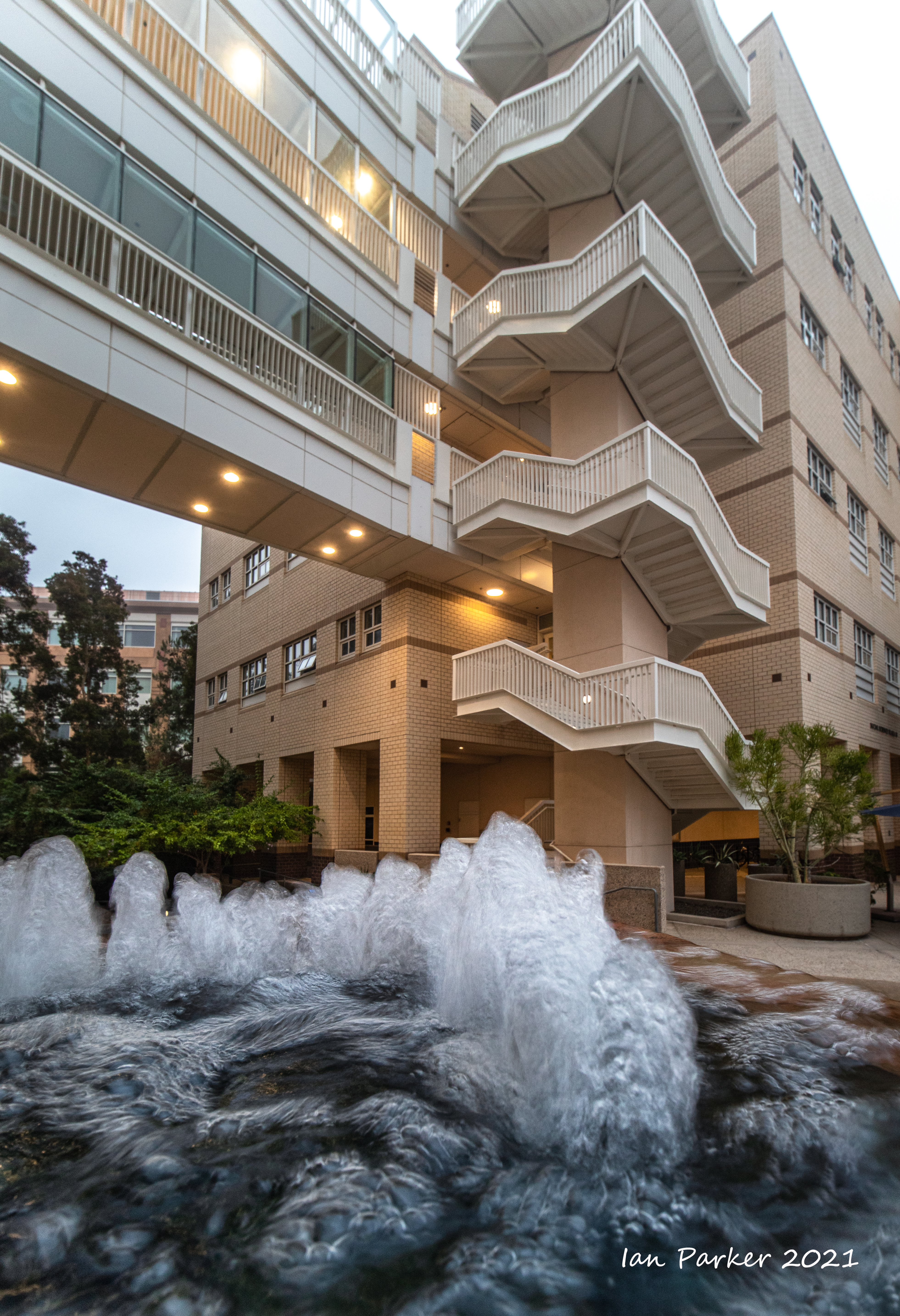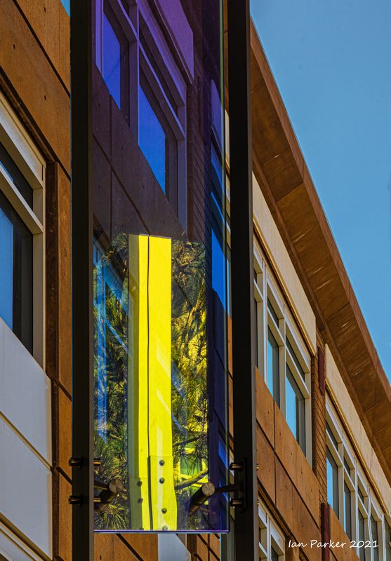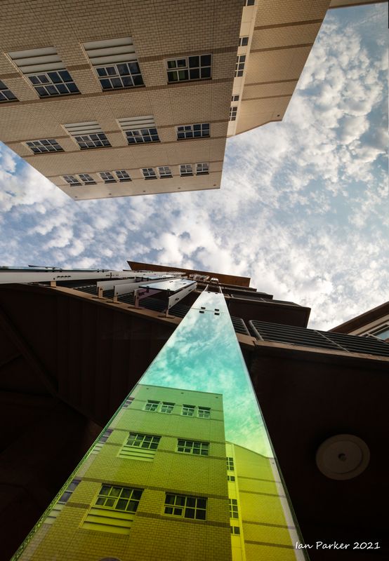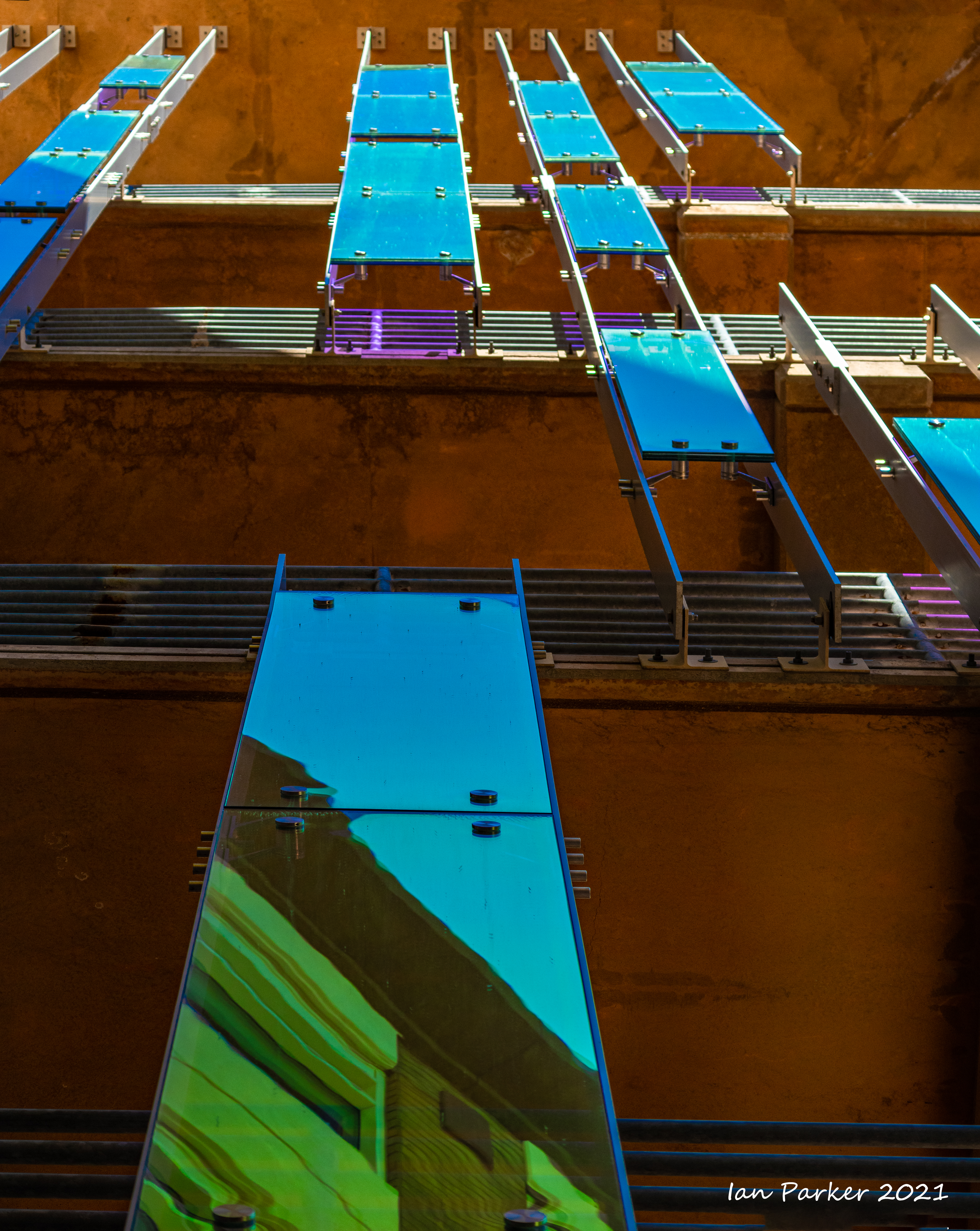 The academic buildings had been locked throughout the covid pandemic with key-card access only for those researchers working in a building. Last week arrangements started to return to normal, with buildings unlocked during the day. One building I had particularly hankered to get into was the Engineering Hall, with its glass-enclosed stairway supported by a spectacularly orange framework and topped by an orange inverted Vee structure.