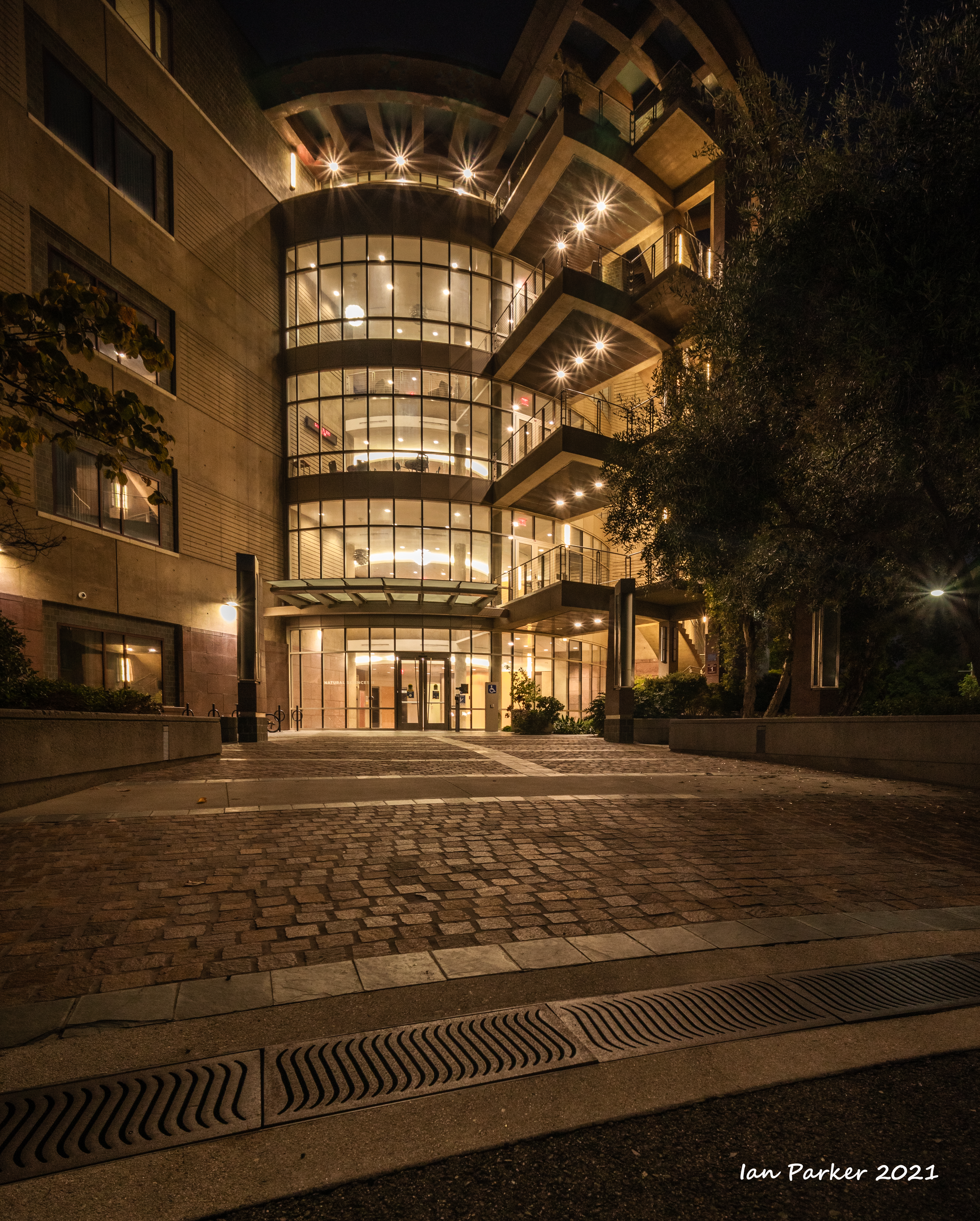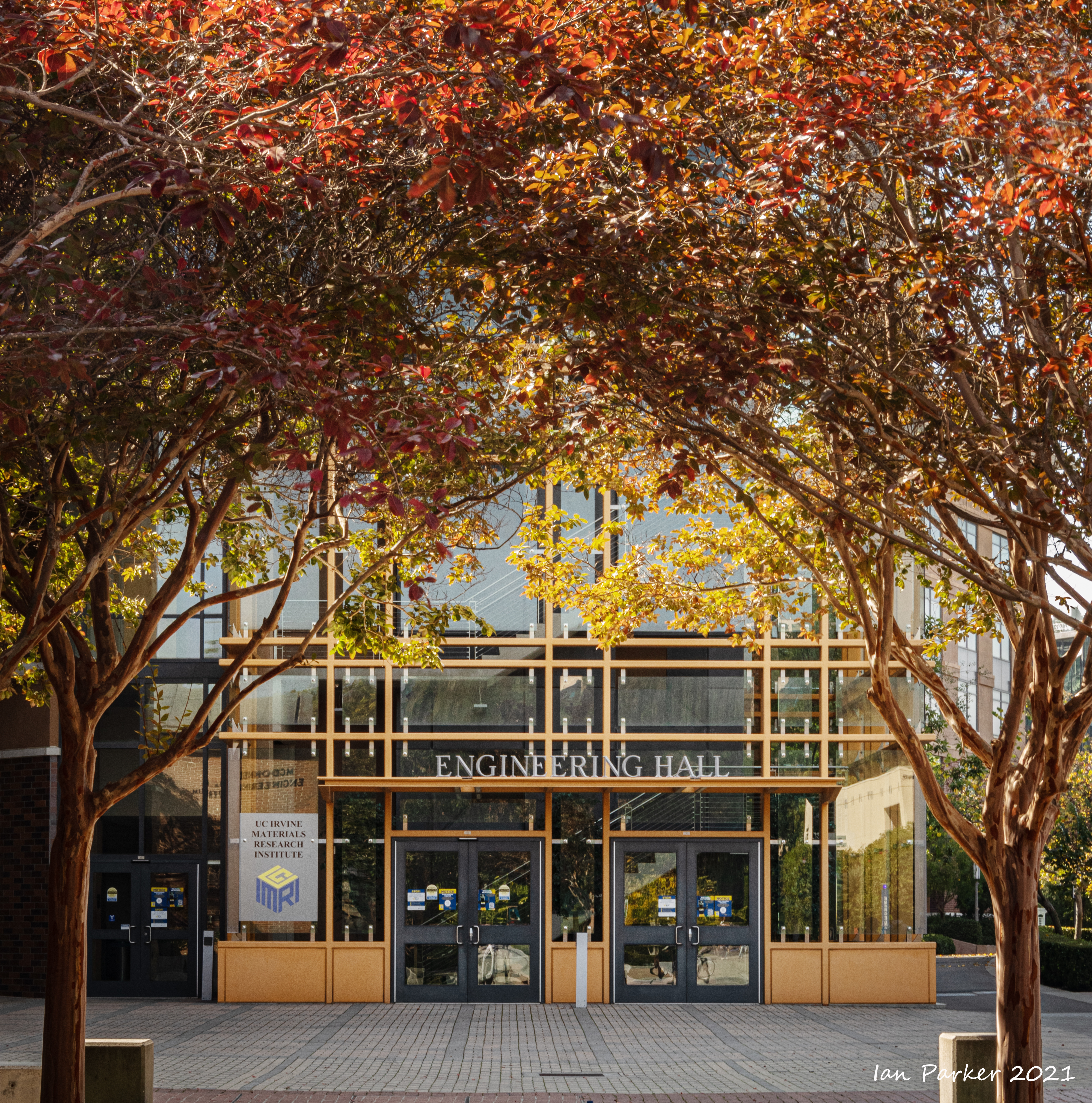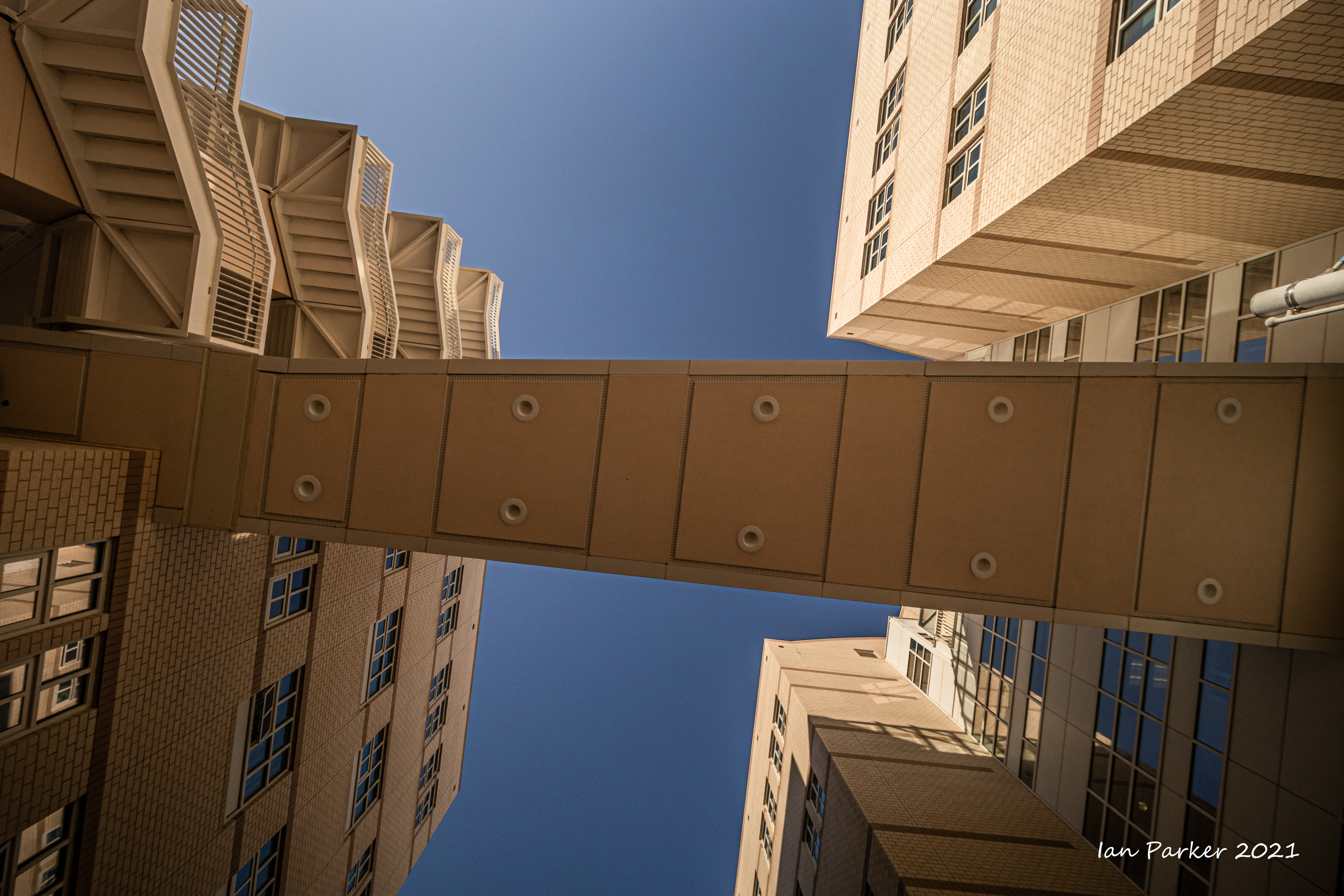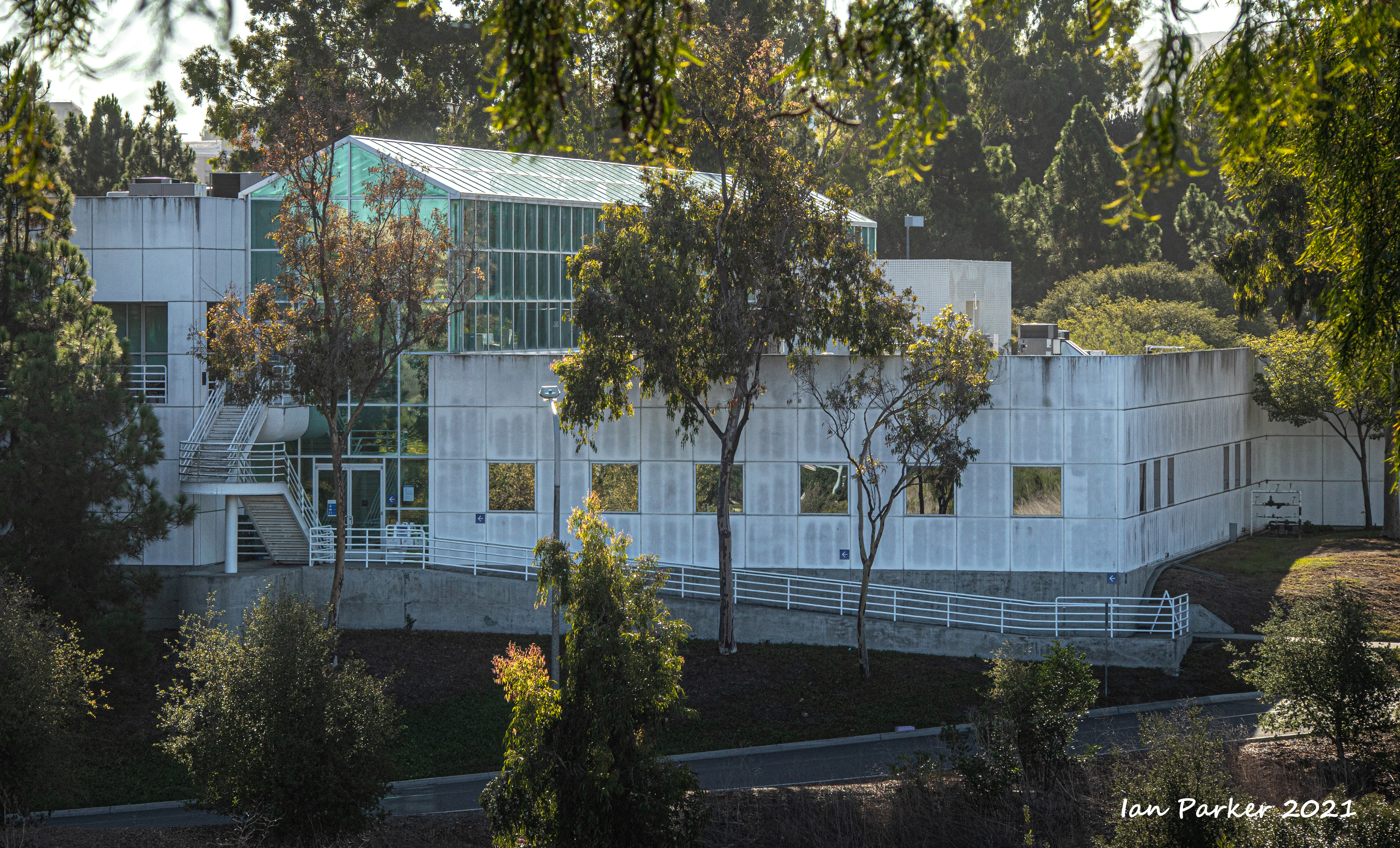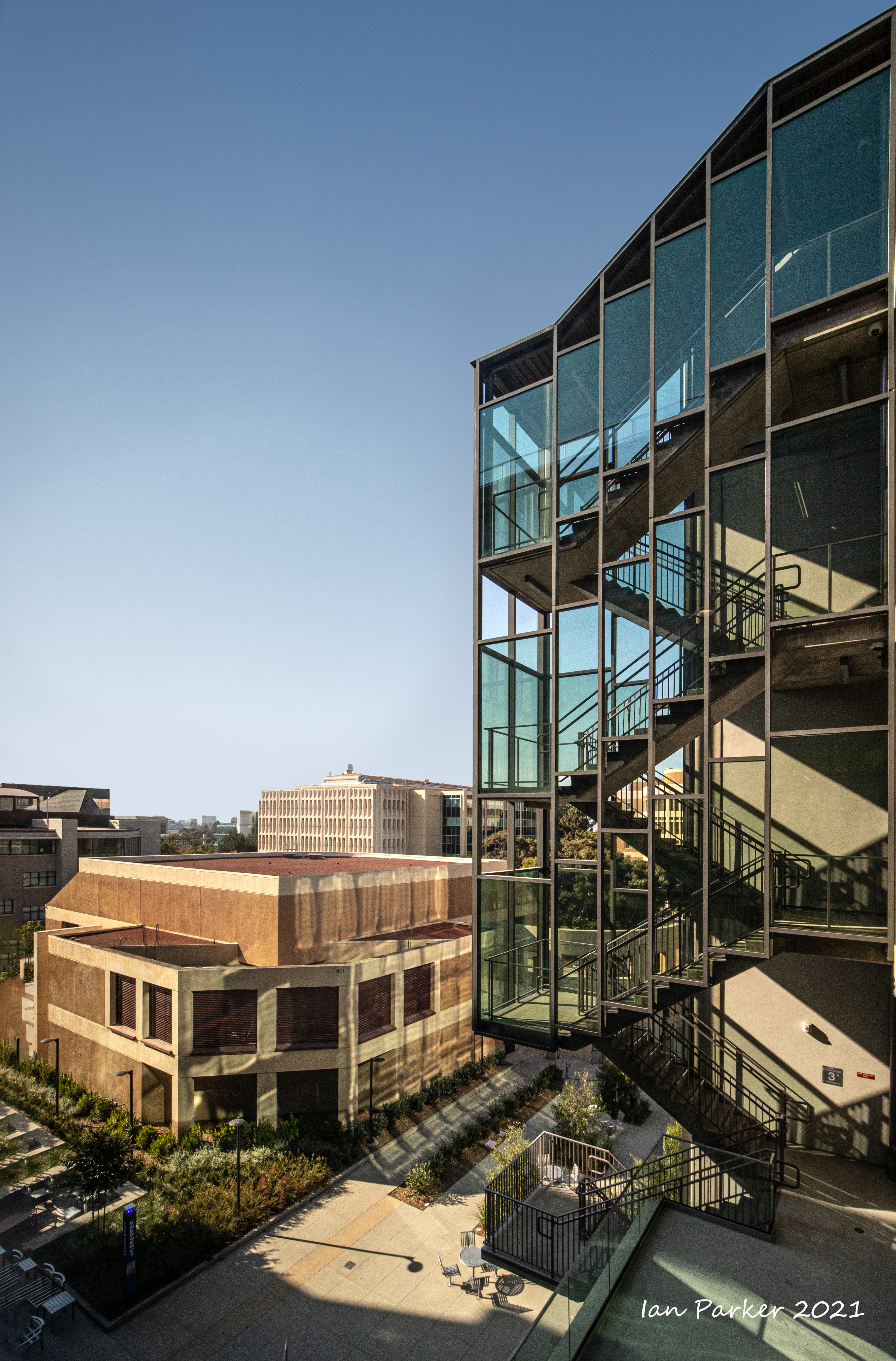 The academic buildings had been locked throughout the covid pandemic with key-card access only for those researchers working in a building. Last week arrangements started to return to normal, with buildings unlocked during the day. One building I had particularly hankered to get into was the Engineering Hall, with its glass-enclosed stairway supported by a spectacularly orange framework and topped by an orange inverted Vee structure.
