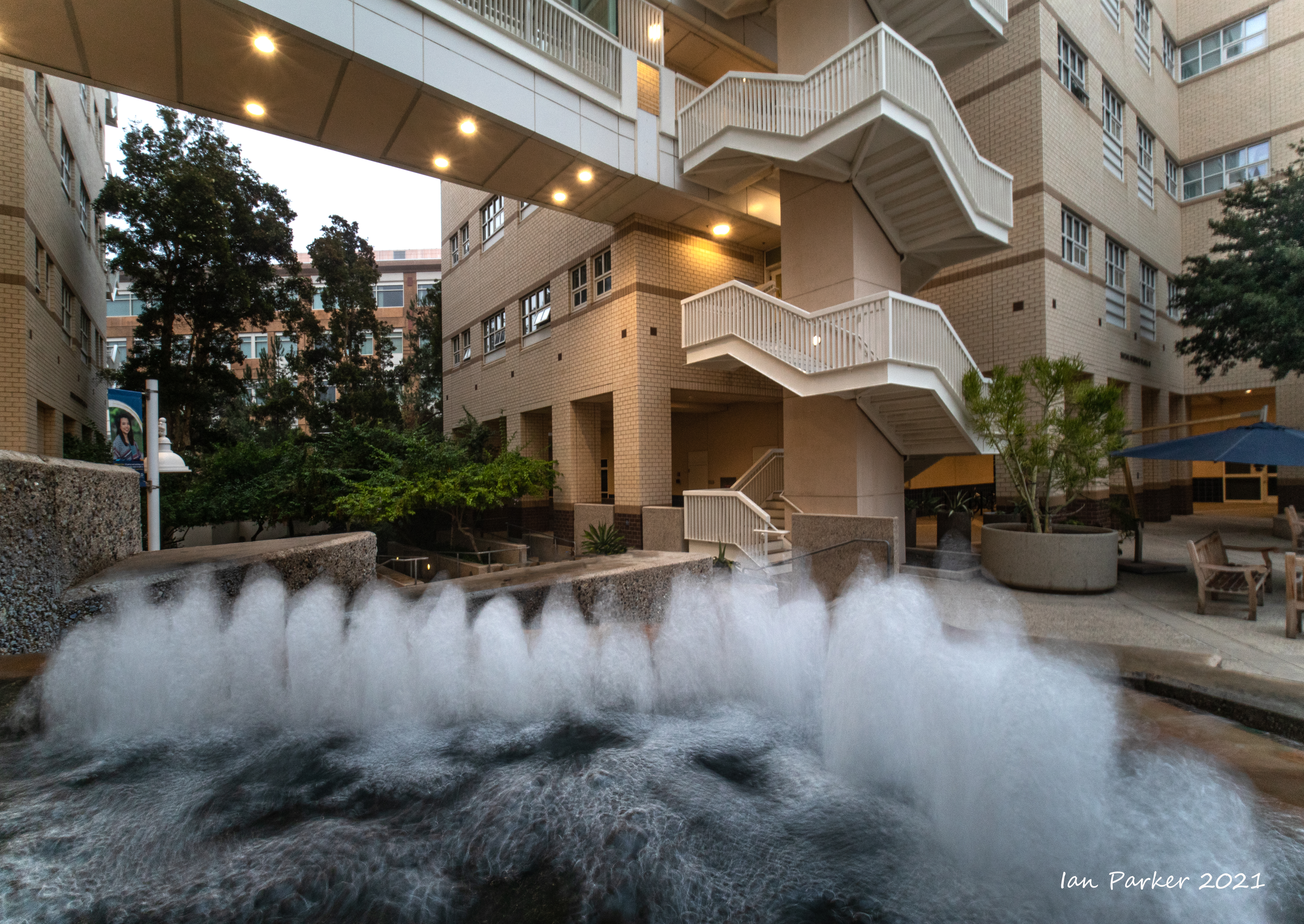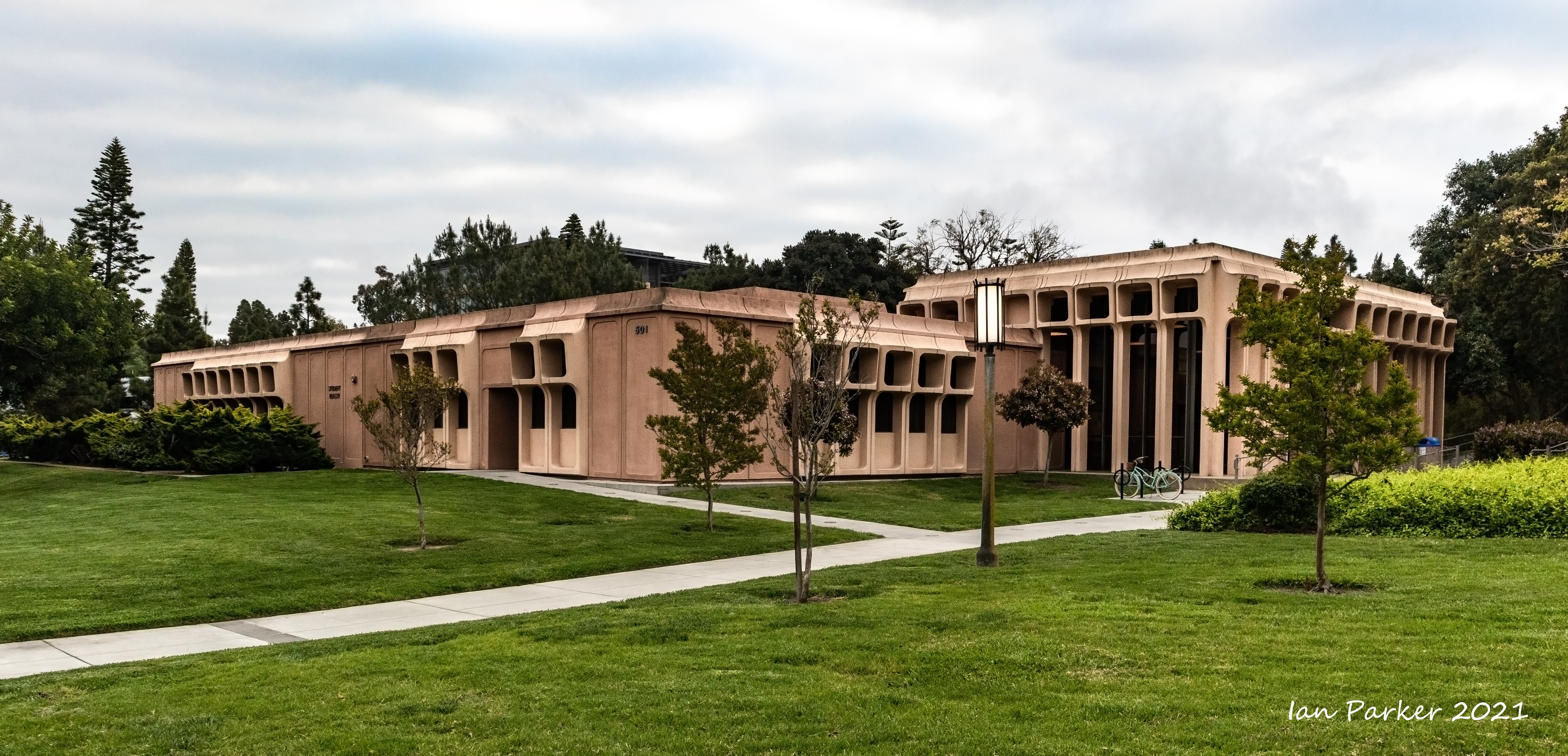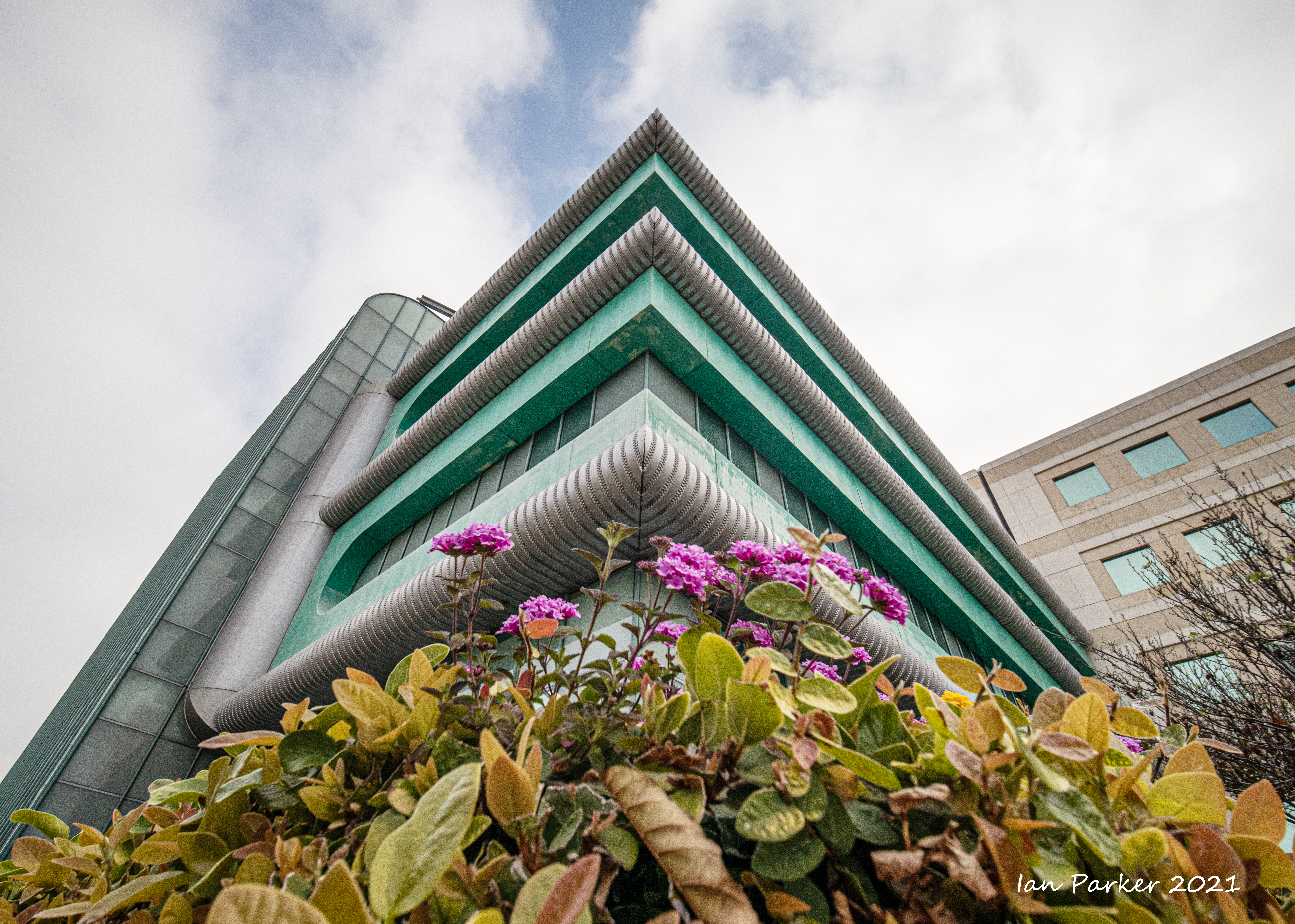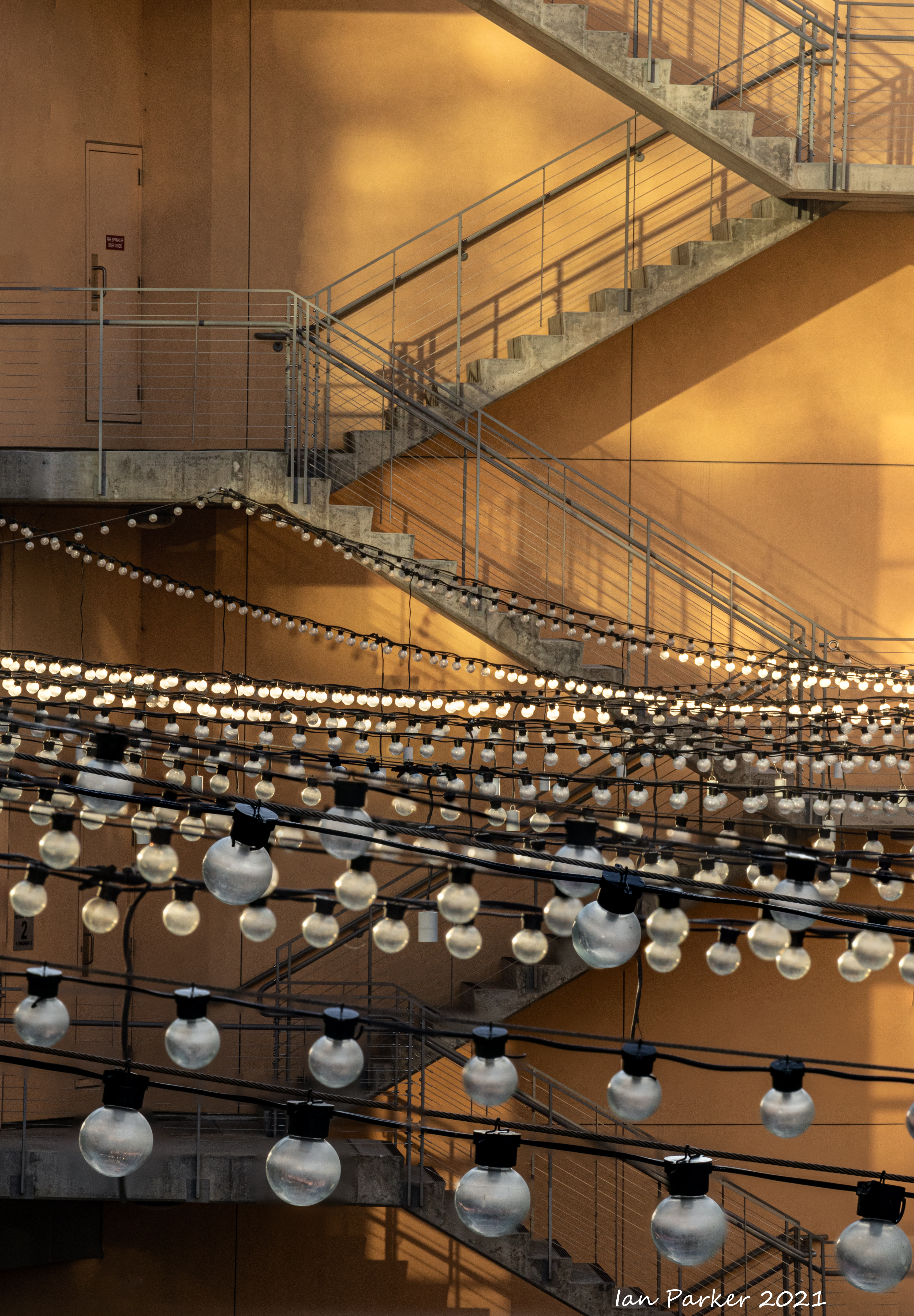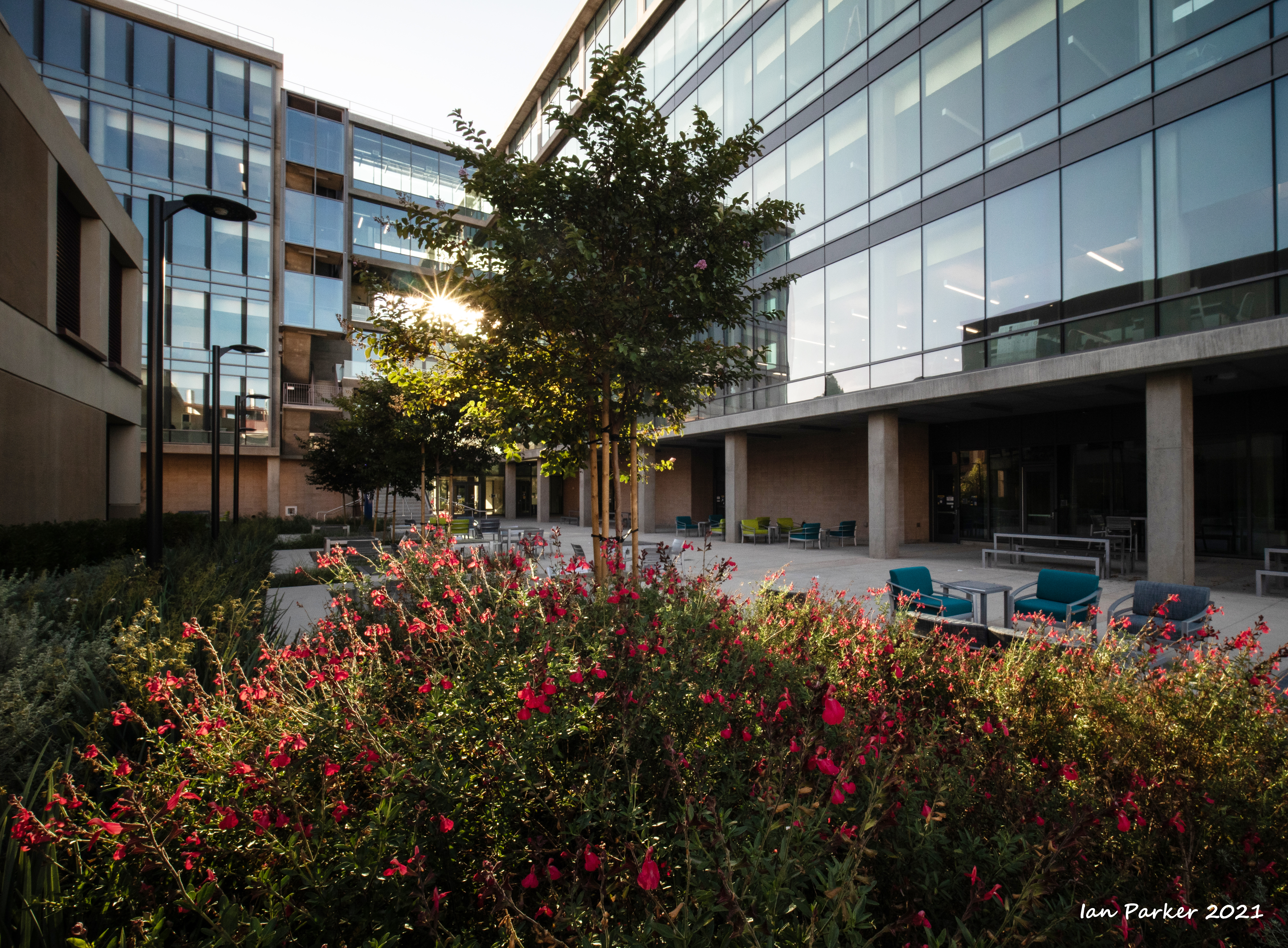 The academic buildings had been locked throughout the covid pandemic with key-card access only for those researchers working in a building. Last week arrangements started to return to normal, with buildings unlocked during the day. One building I had particularly hankered to get into was the Engineering Hall, with its glass-enclosed stairway supported by a spectacularly orange framework and topped by an orange inverted Vee structure.