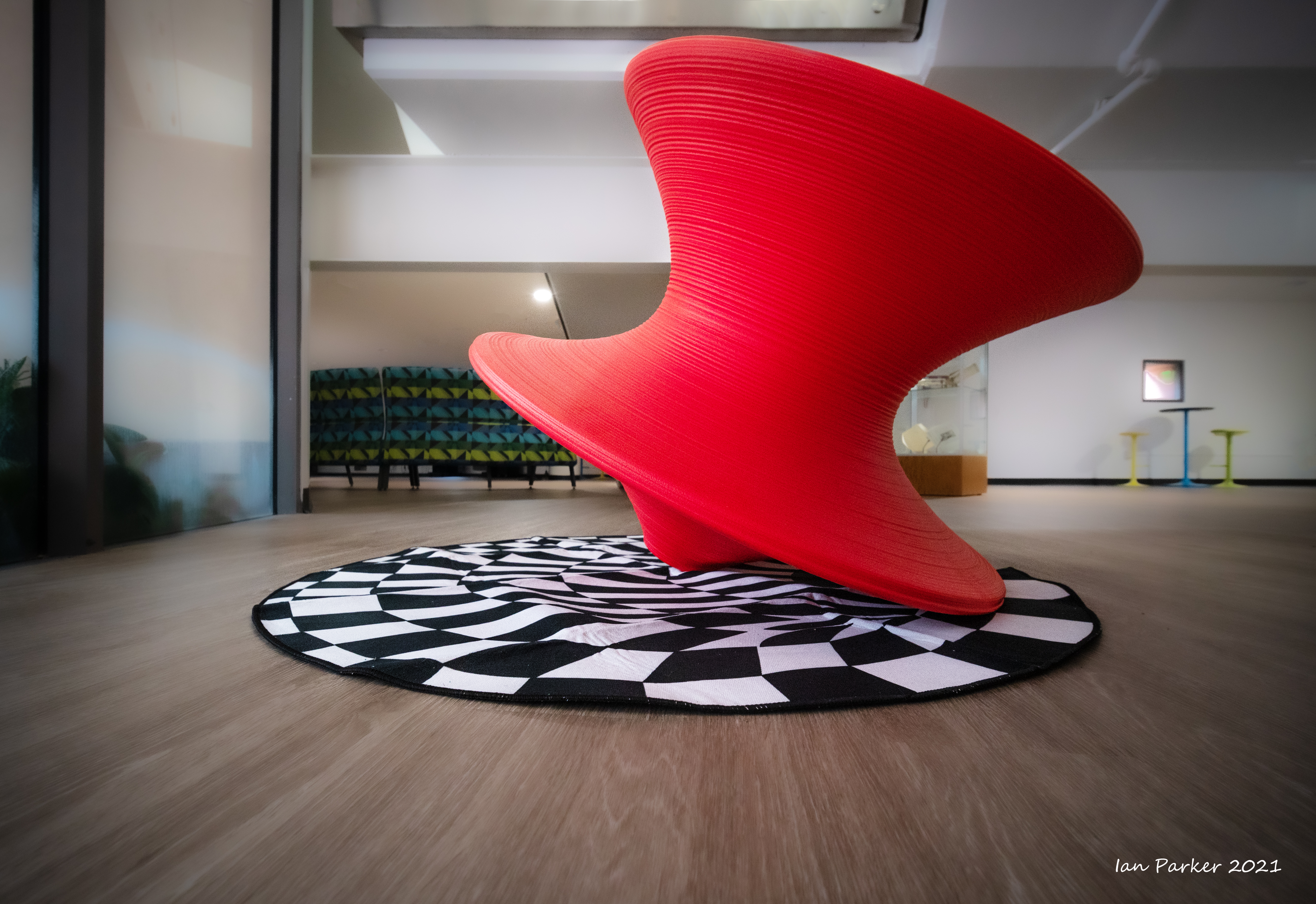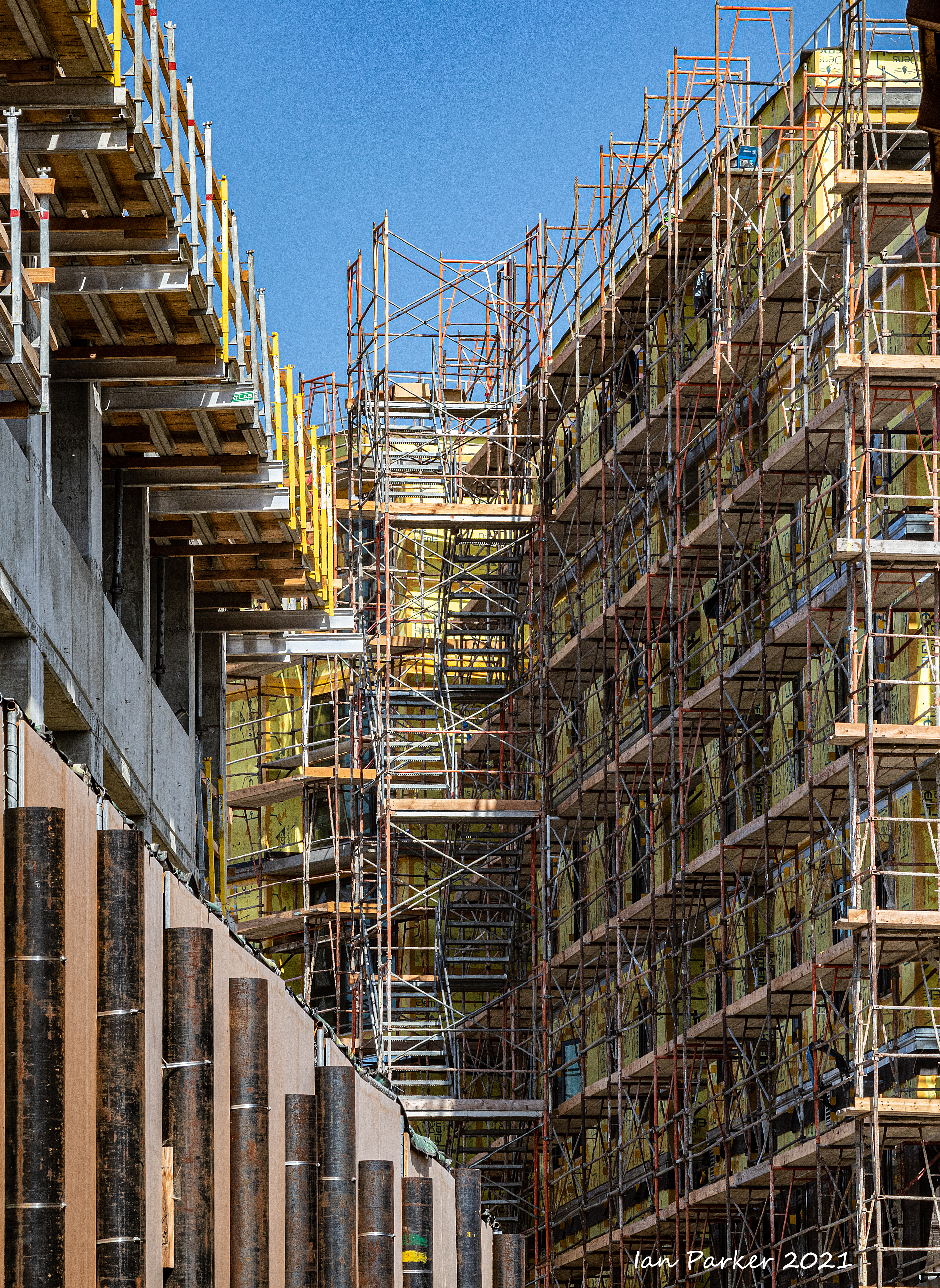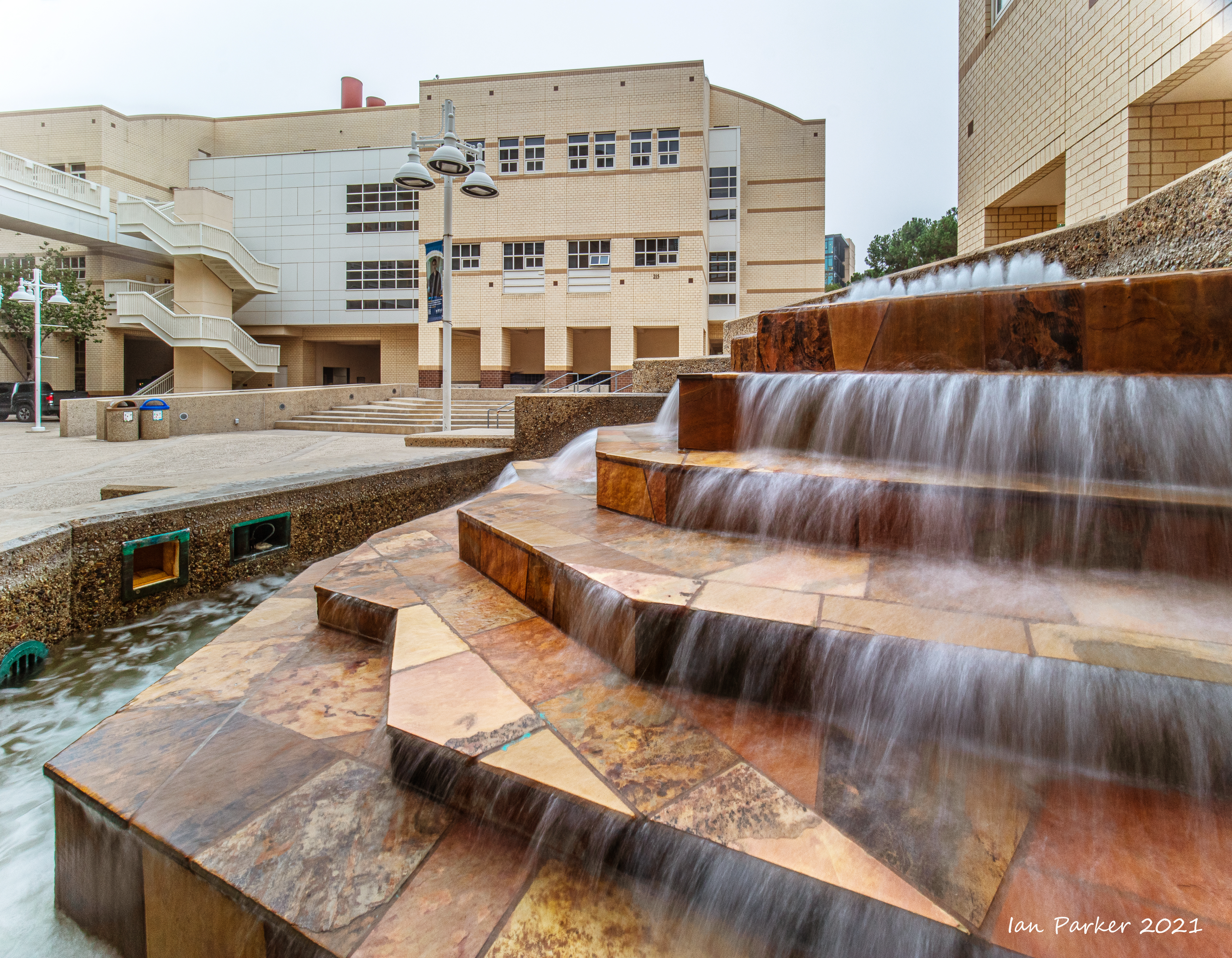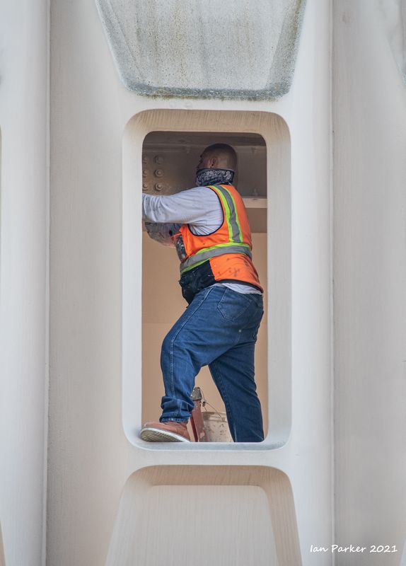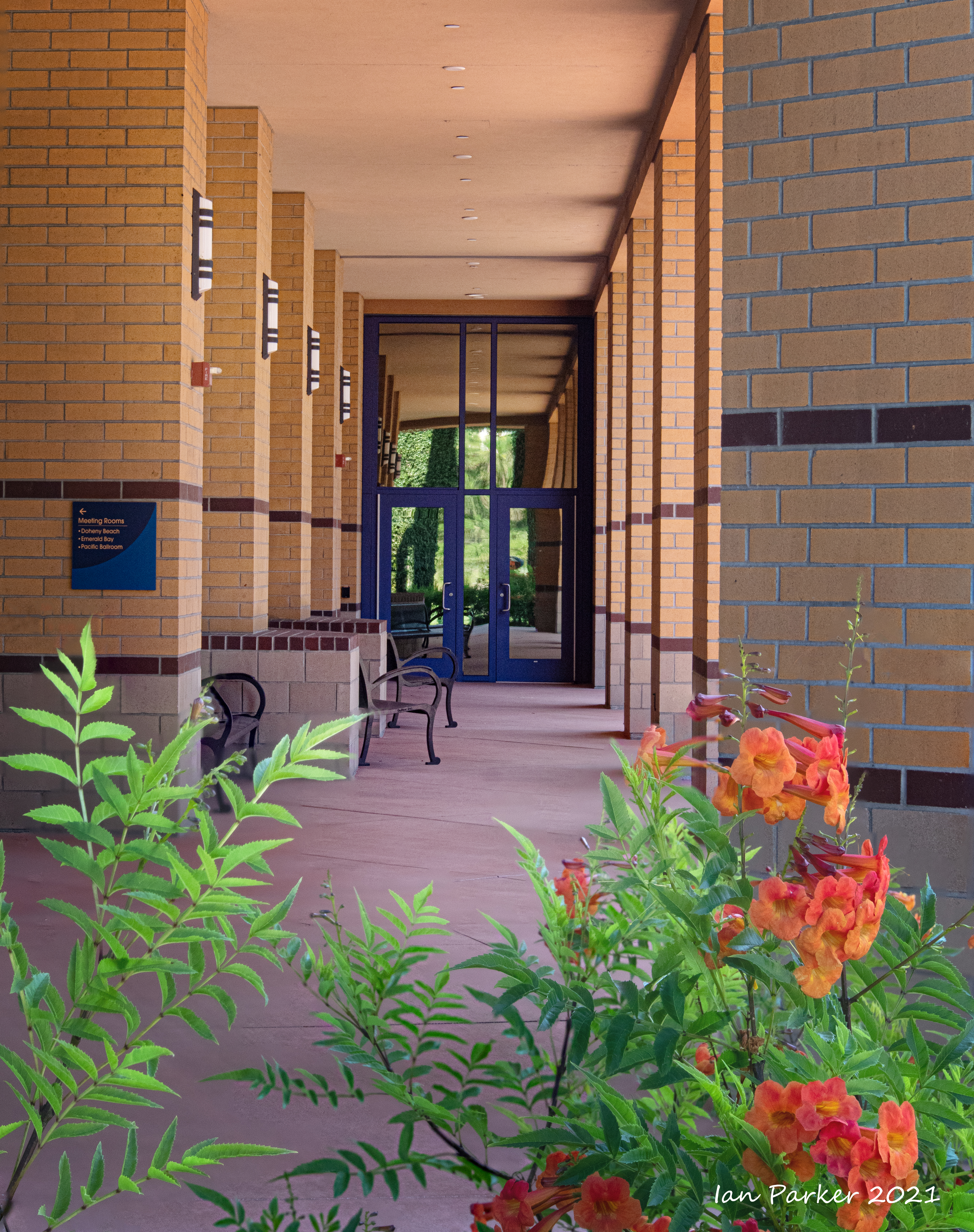 The academic buildings had been locked throughout the covid pandemic with key-card access only for those researchers working in a building. Last week arrangements started to return to normal, with buildings unlocked during the day. One building I had particularly hankered to get into was the Engineering Hall, with its glass-enclosed stairway supported by a spectacularly orange framework and topped by an orange inverted Vee structure.