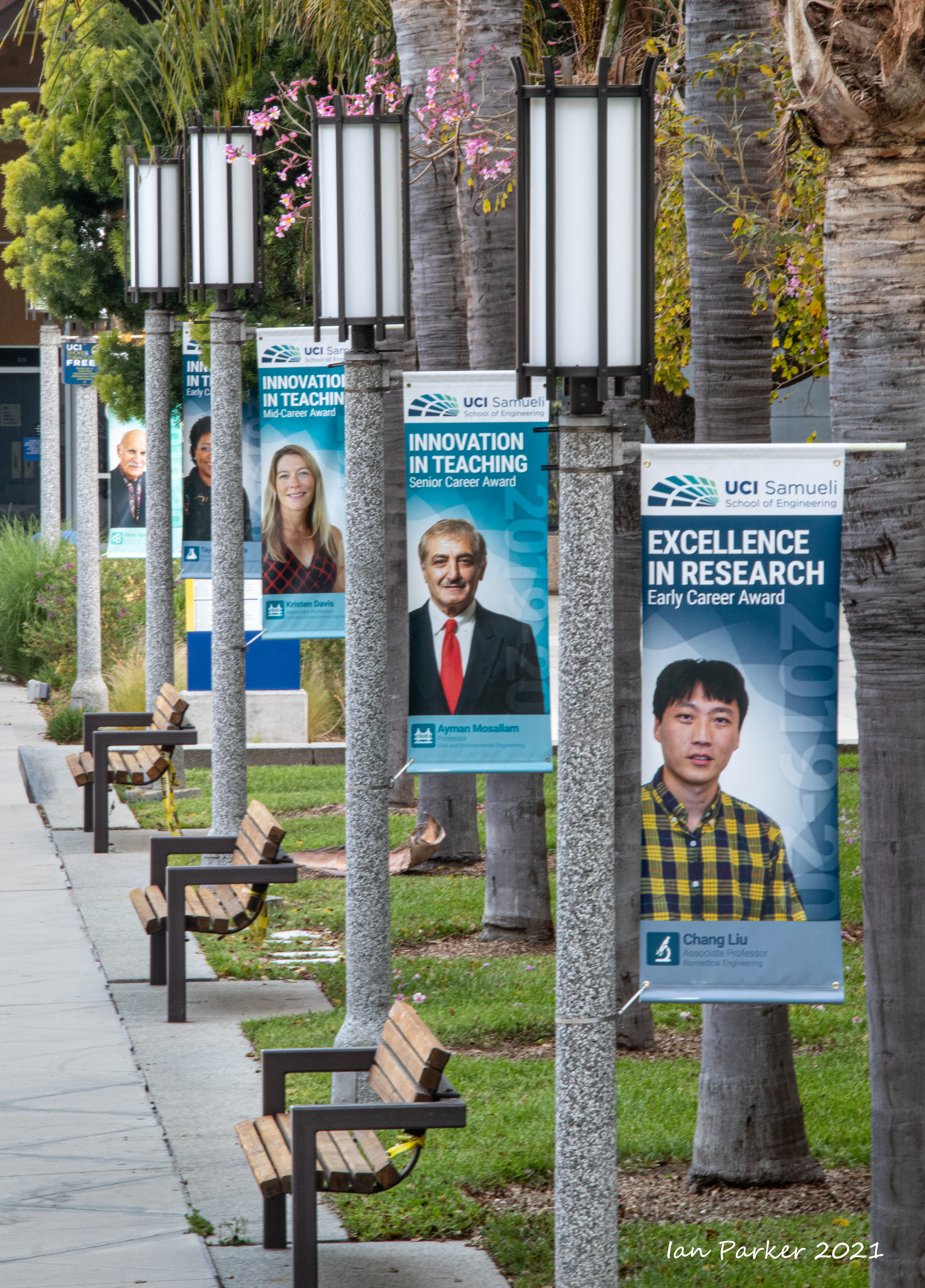 These plaques used to be center-stage in the middle of the main plaza by Aldrich Hall, but were unceremoniously moved several years ago when the plaza was re-tiled to form a giant anteater image.Now they are hidden away on the concreteat a back corner of the plaza; one plaque (1998) has gone missing when the concrete cracked;and no new plaques have been added since the early years of the new millenium. It does seem a little sad that an important part of UCI heritage, is so neglected - one that should document the enormous growth of the campus from 10 bachelors degrees awarde in1966 to 9404 in 2020.