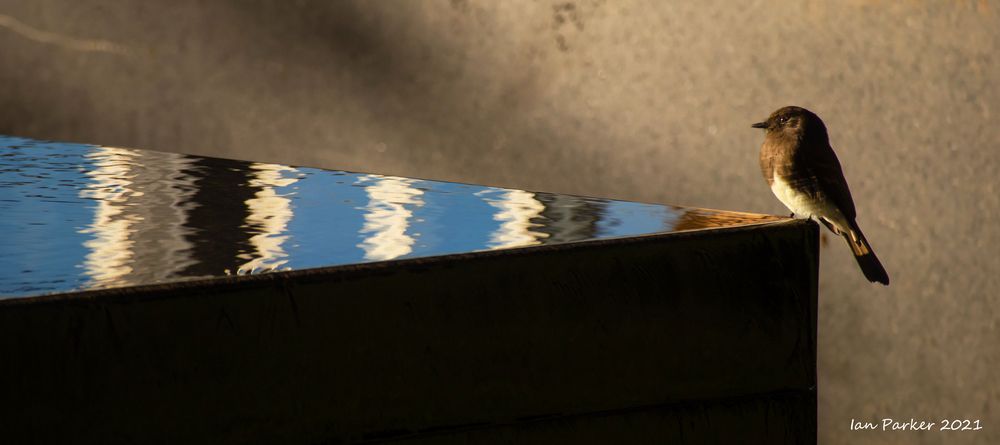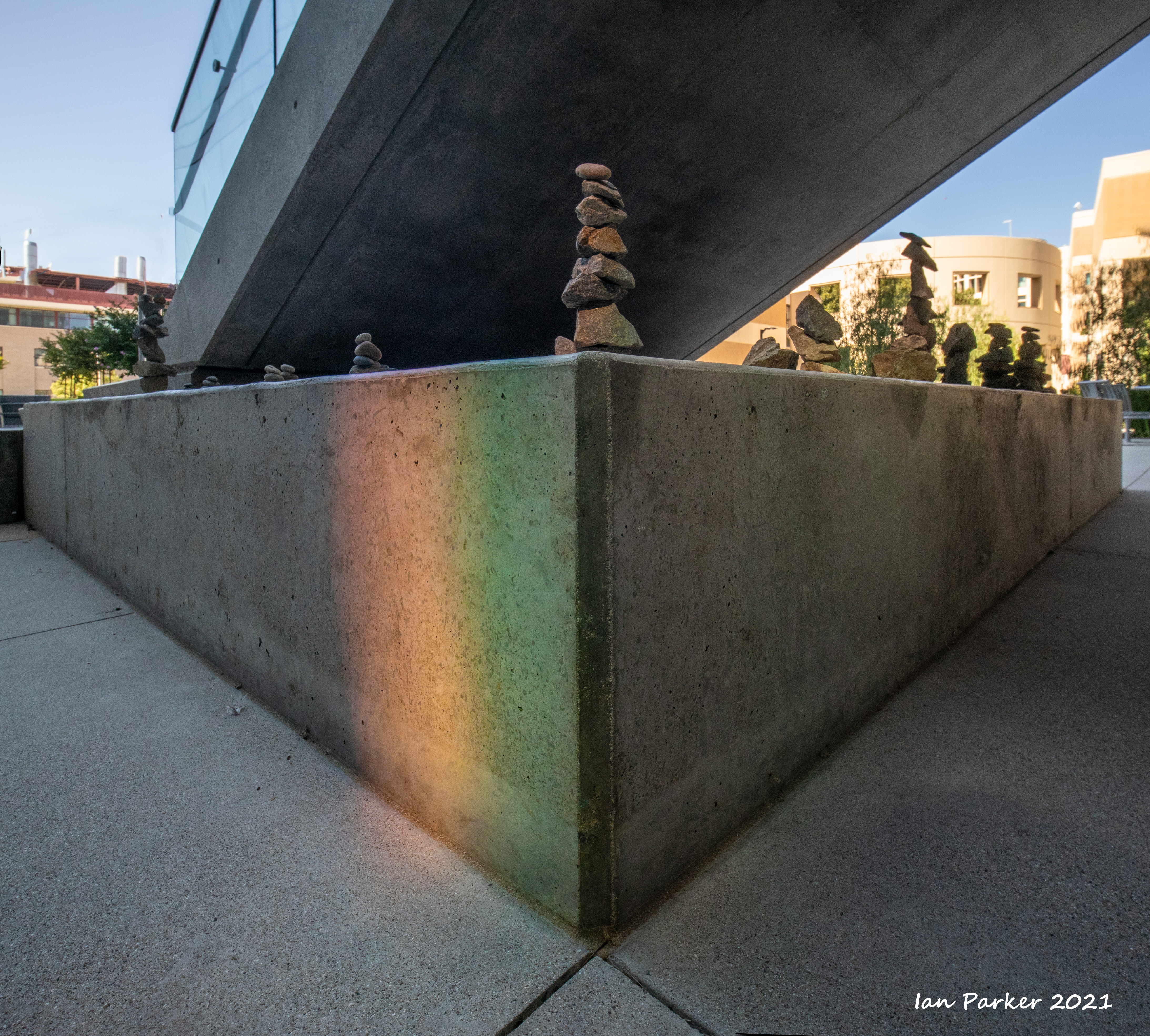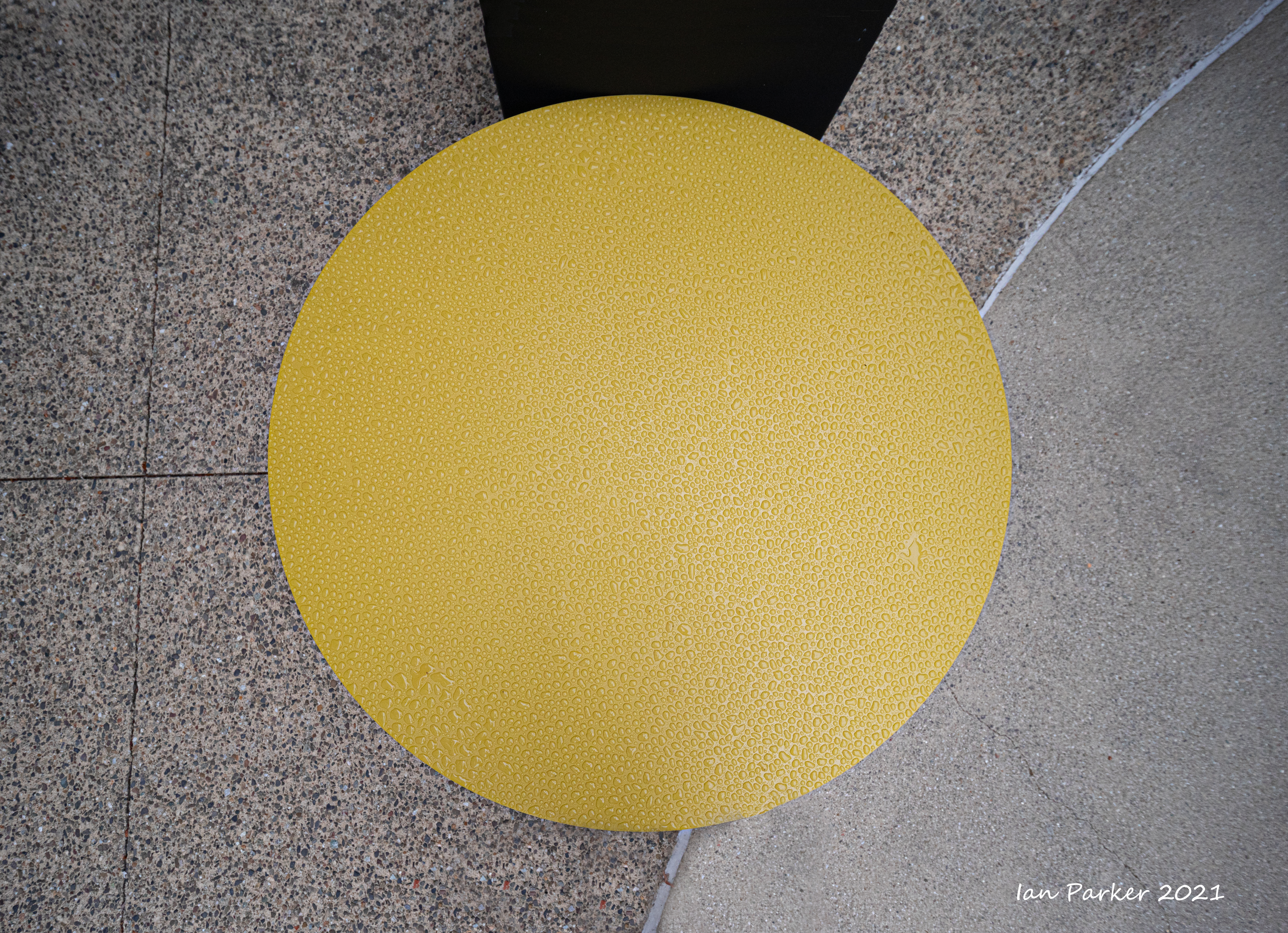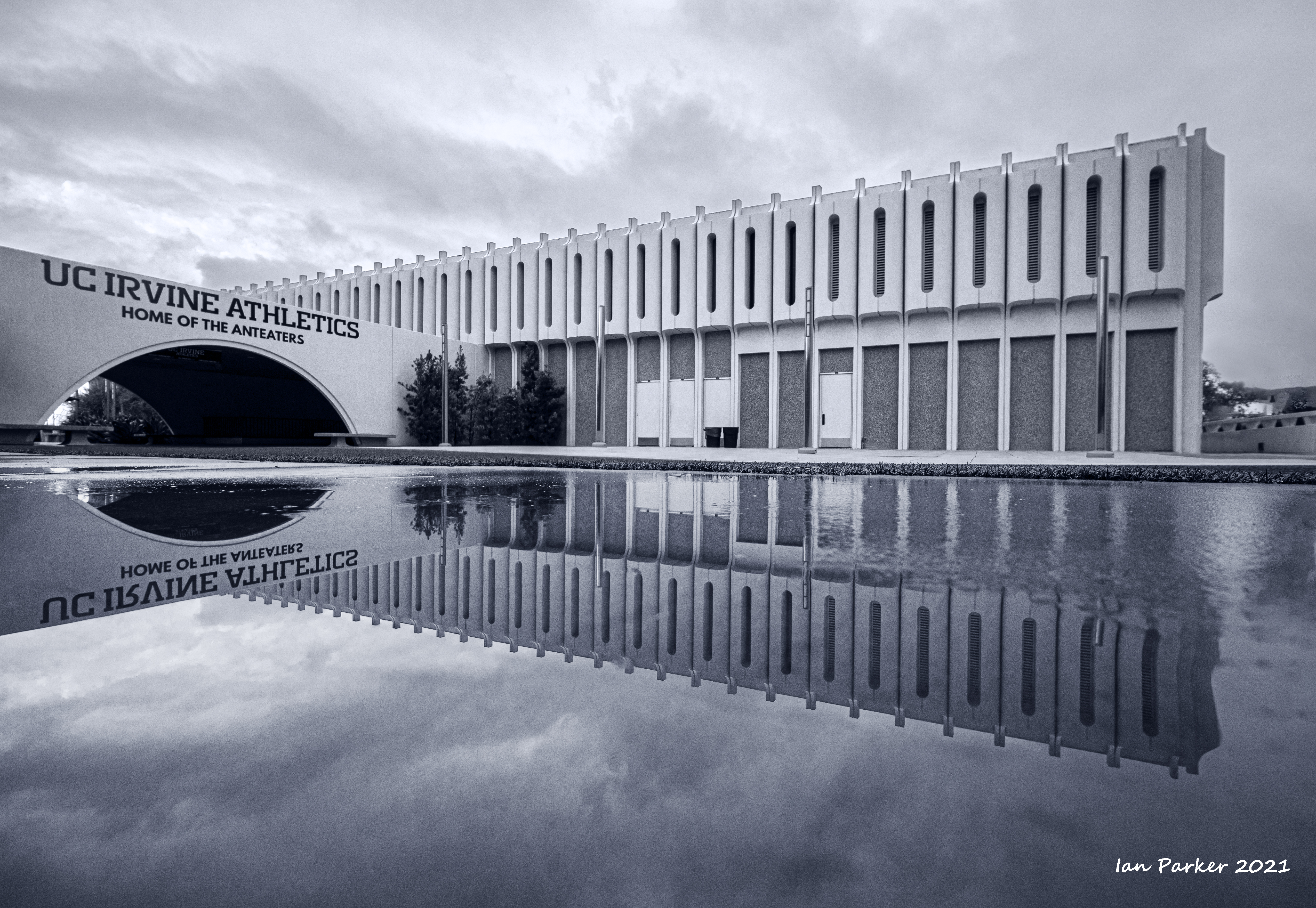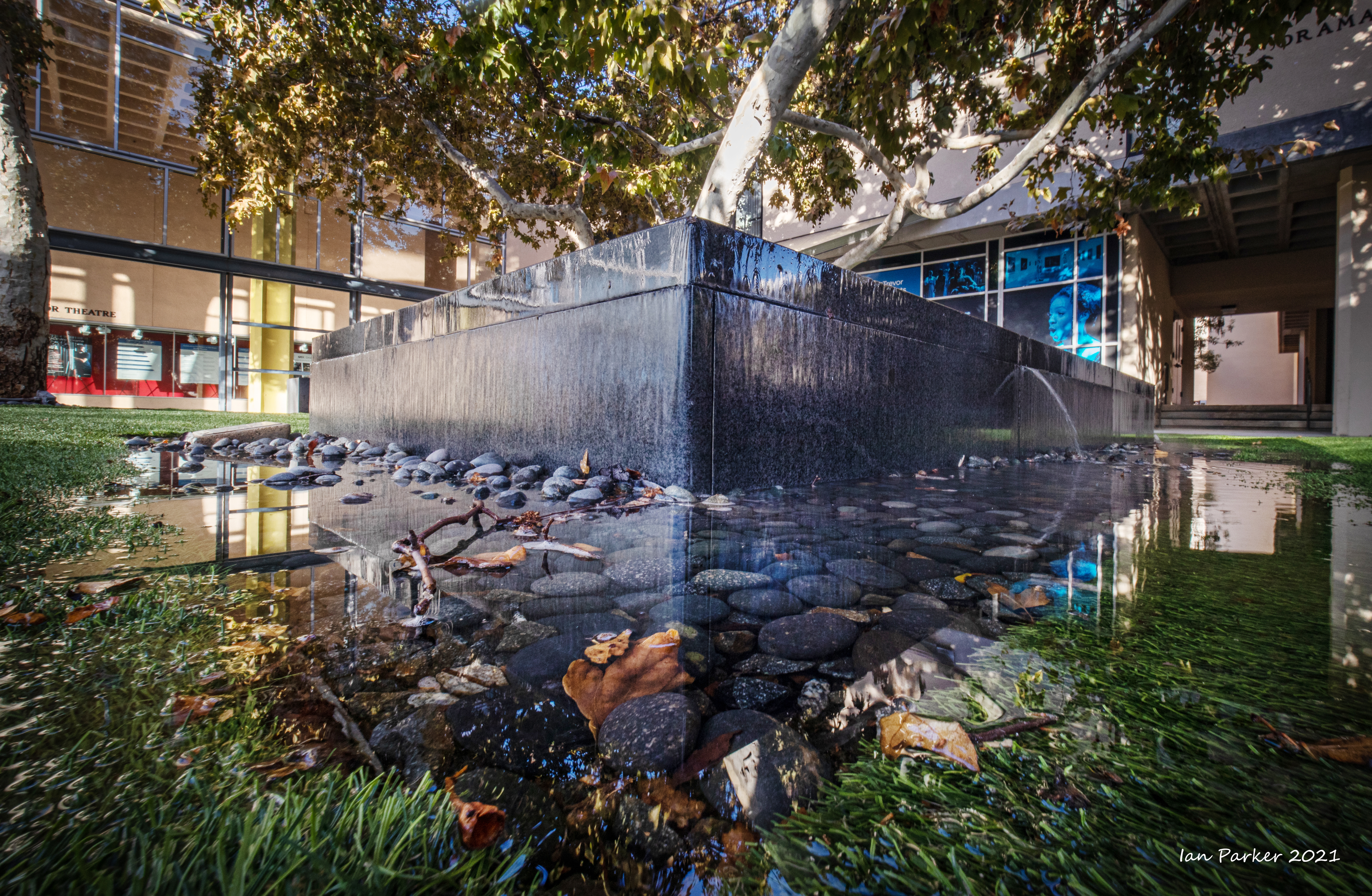 An unusually ferocious thunderstorm on Monday night took out power to the campus for several hours; but the downpour left nice reflecting pools when the sky cleared the next morning.
