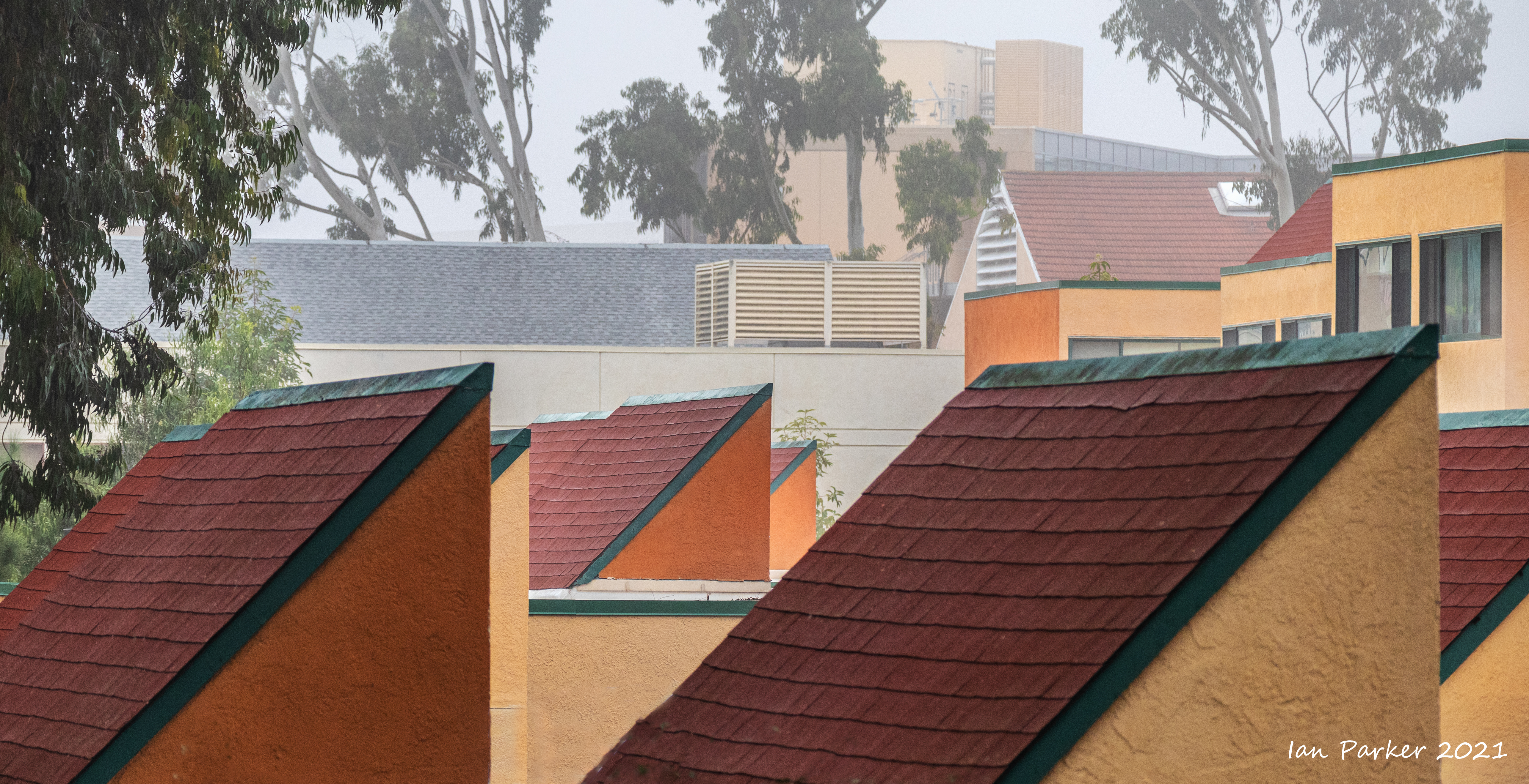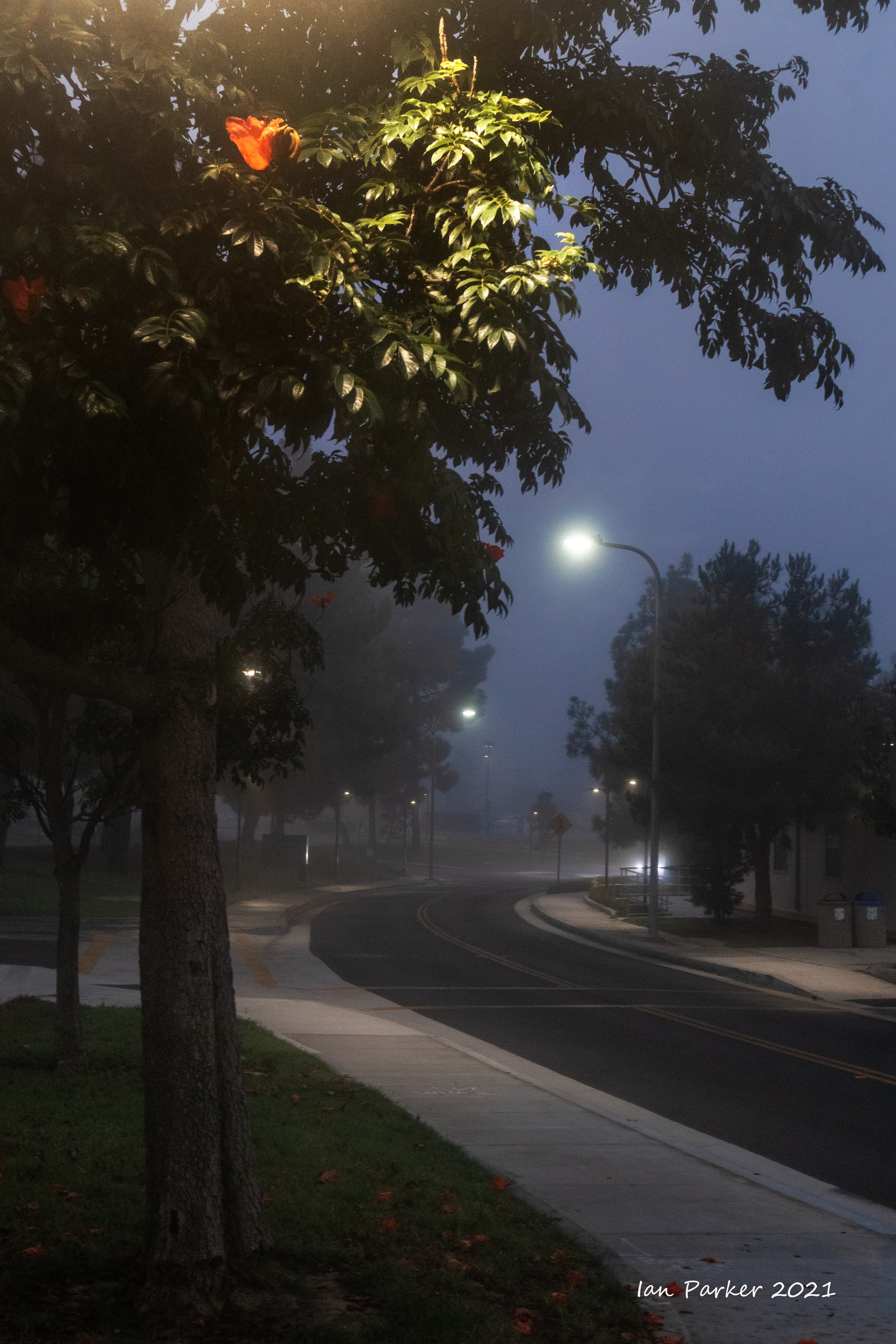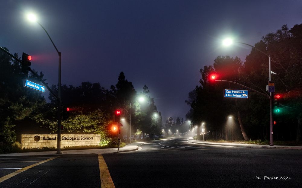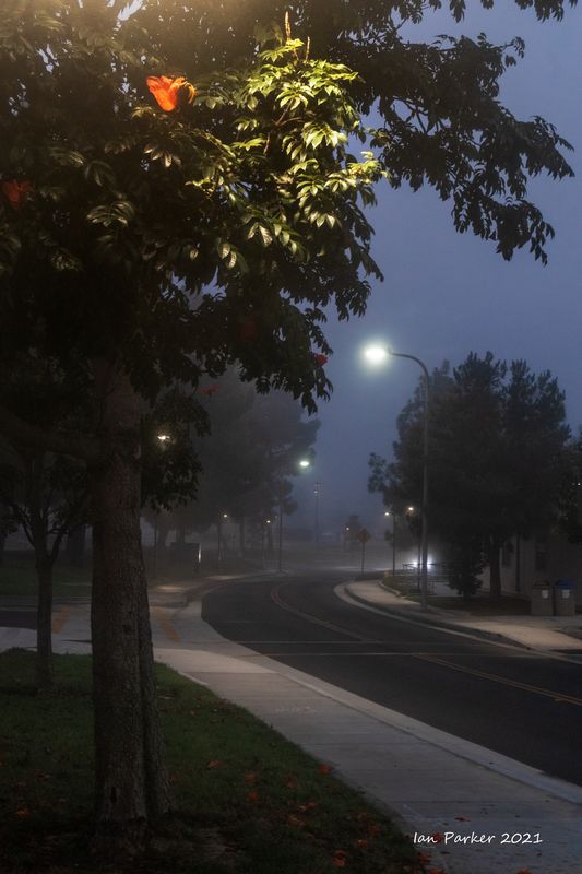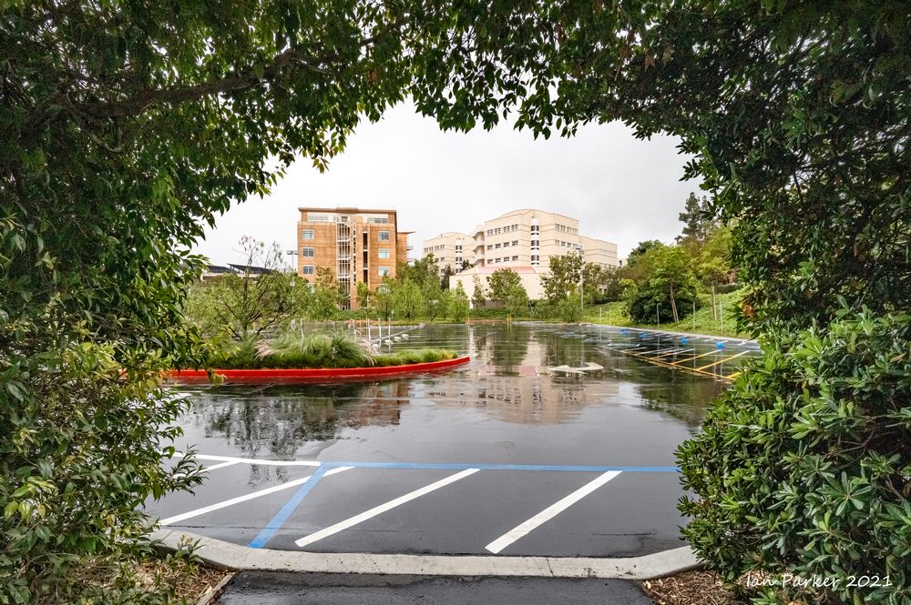 In Irvine we caught only the edge of an 'atmospheric river' that drenched northern California, but enough rain fell overnight to make for some good photos the next mrning. And a few days later, a dense morning fog.