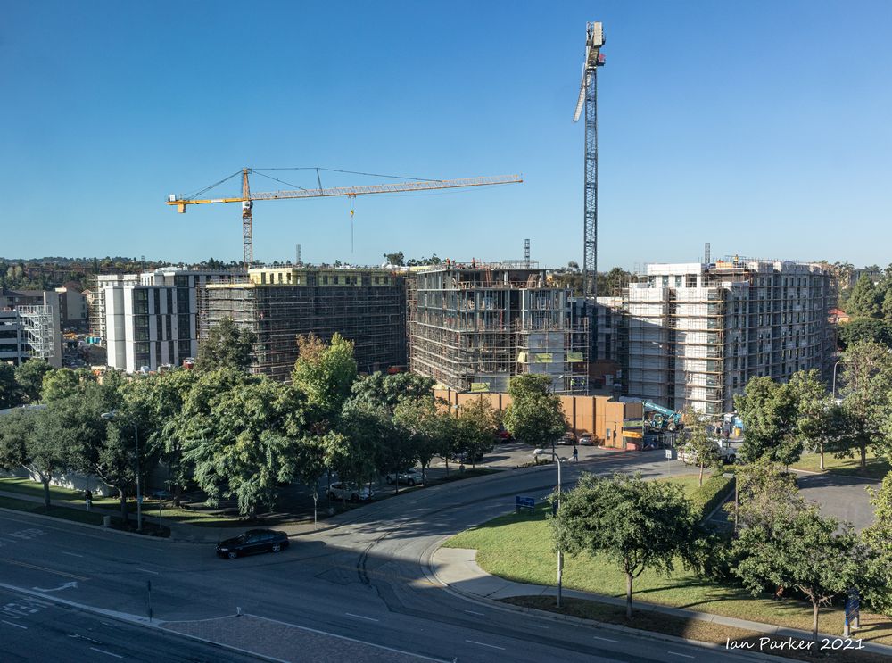 Verano construction site viewed from Plaza Verde- October 2021; UCI